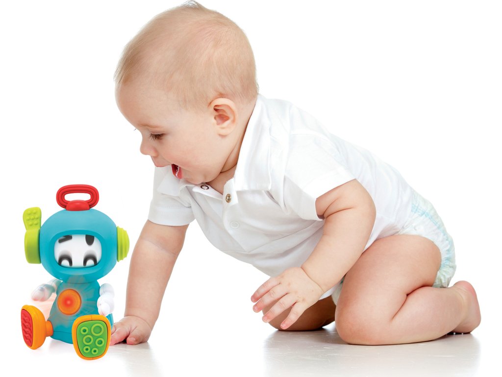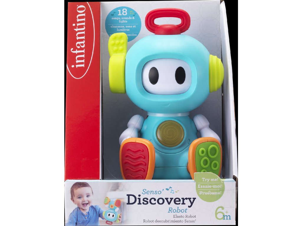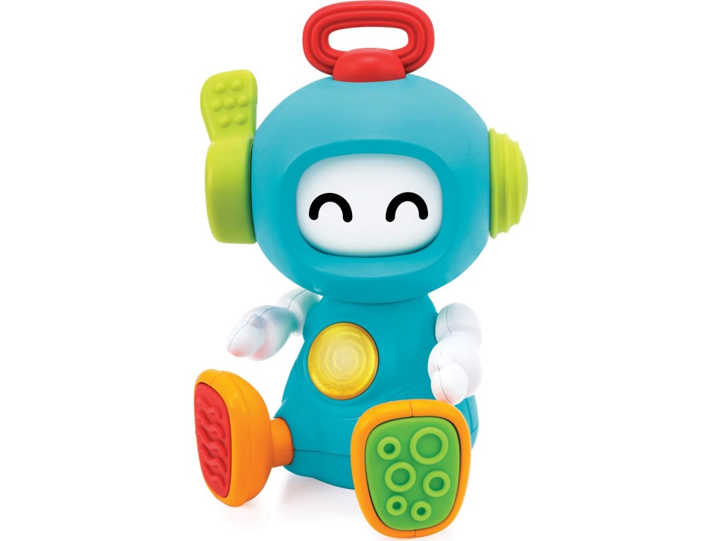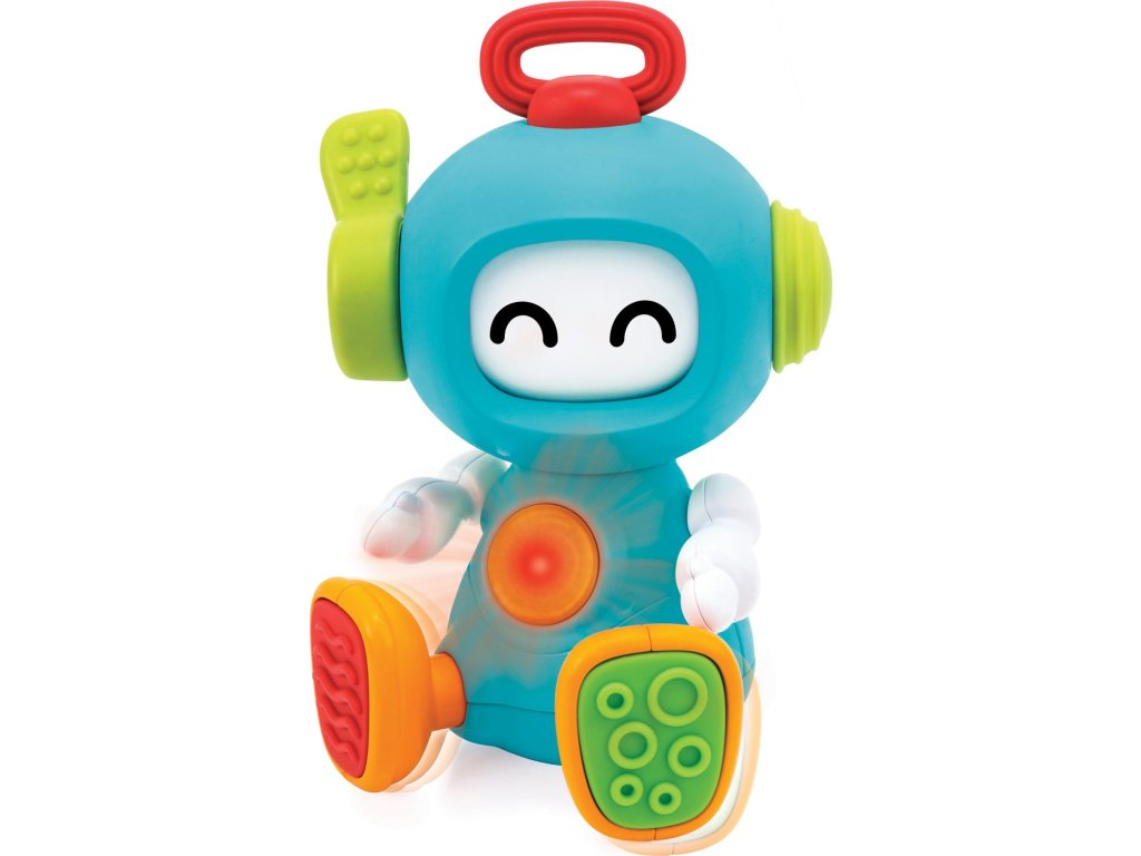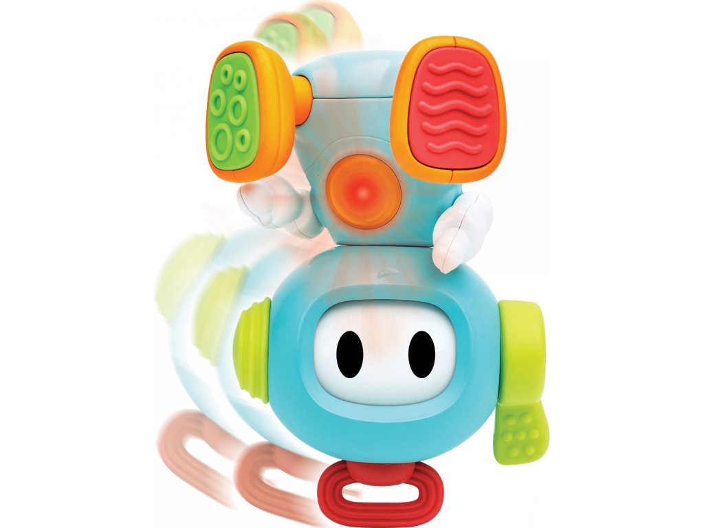 Roztomilý robot pro nejmenší nabízí čtyři různé výrazy obličeje, dvě veselé melodie a 16 světelných a zvukových efektů. Všechny funkce se velmi snadno ovládají zmáčknutím či pohybováním jednotlivými částmi robota.