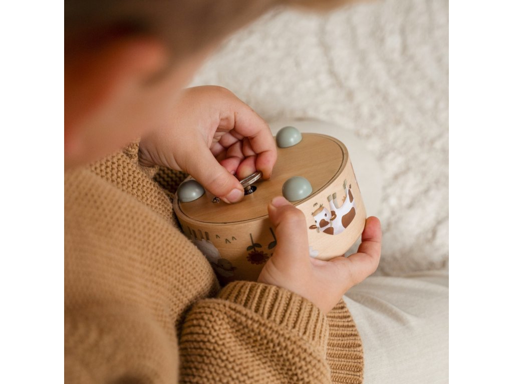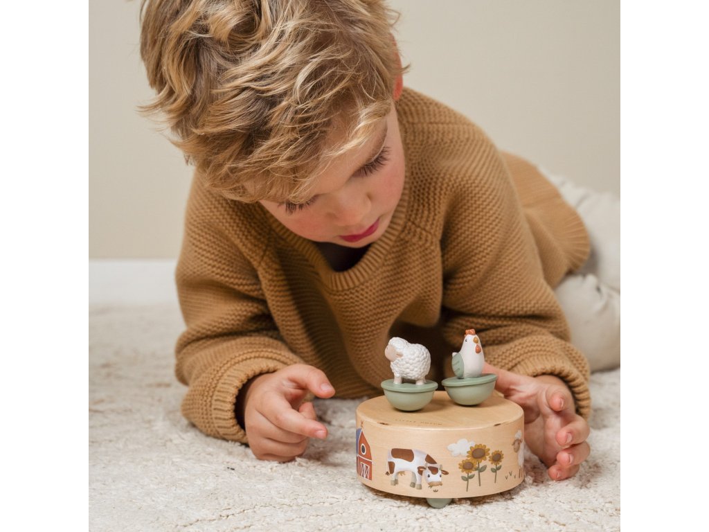 Hudební box je součástí designové kolekce Little Dutch Farma, ve které najdete dekorativní doplňky do dětského pokoje, ložní prádlo, dřevěné a plyšové hračky i jídelní doplňky pro dětské stolování.