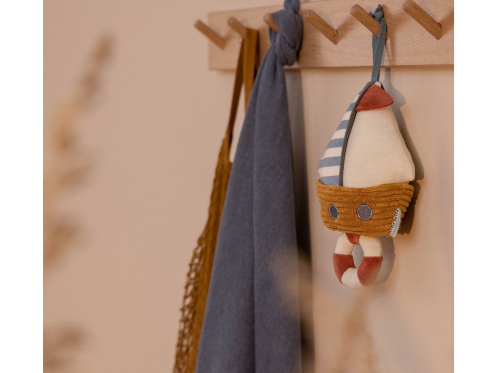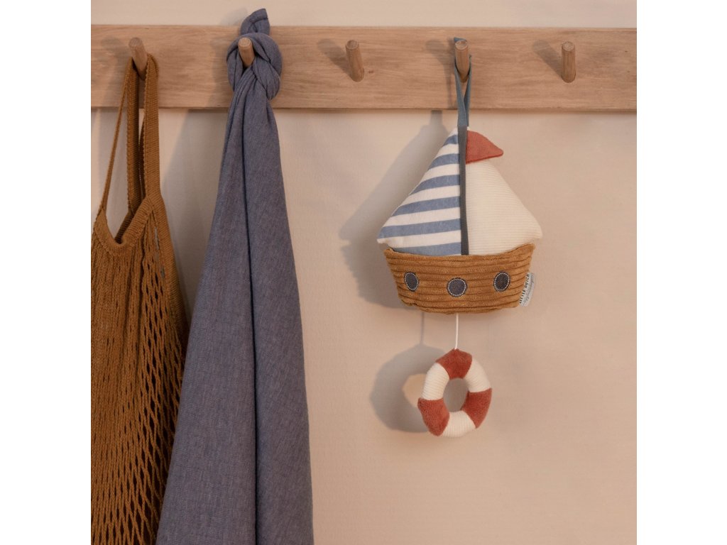 Závěsná hračka v podobě plachetnice se záchranným kruhem v sobě skrývá natahovací hudební box s melodií, která vaše miminko uklidní a pomůže mu usnout. Hračku snadno připevníte k postýlce či komodě.
