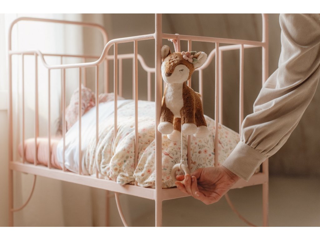 Závěsná hračka v podobě něžné srnky v sobě skrývá natahovací hudební box s příjemnou ukolébavkou, která vaše miminko uklidní a pomůže mu usnout. Hračku snadno připevníte k postýlce či komodě.