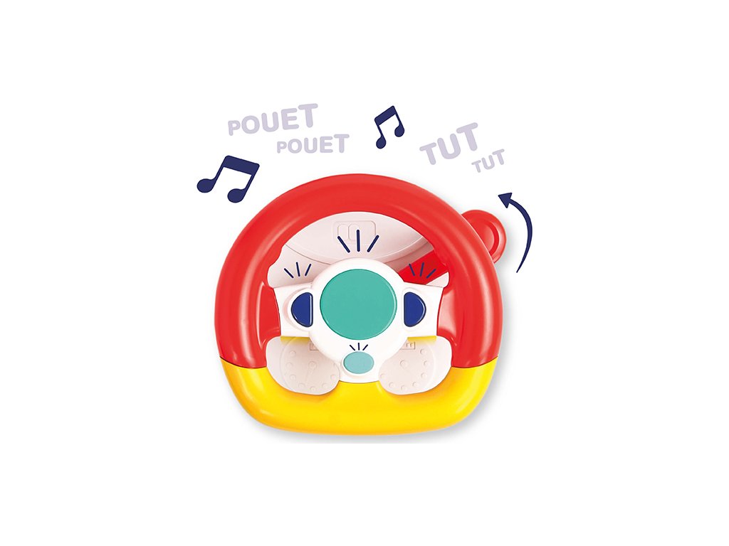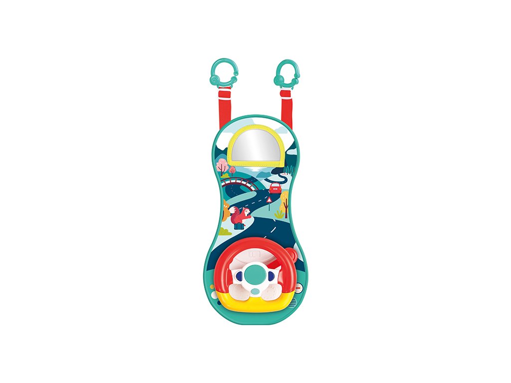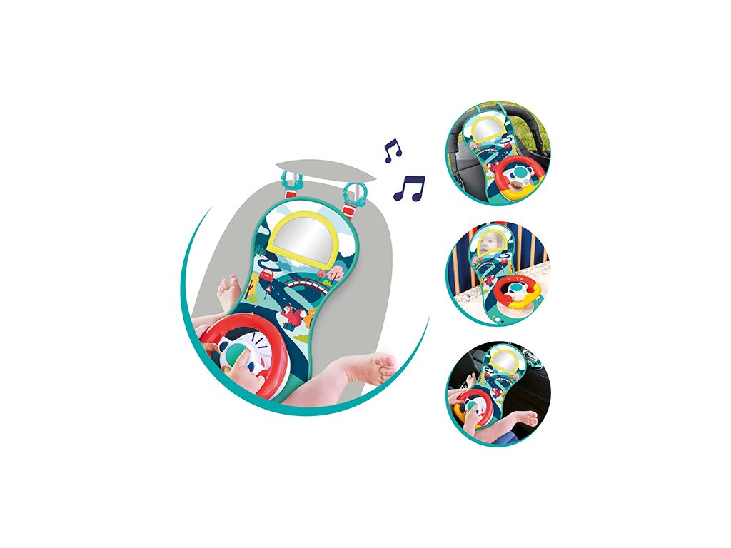 Interaktivní hrací pultík zabaví vaše dítě na cestách autem. Volant nabízí tlačítka se zvuky startování, klaksonu a blinkrů, pozornost dítěte upoutá i bezpečné zrcátko.