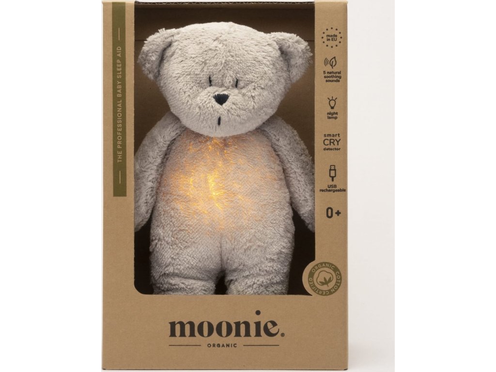 Moonie usínáček v podobě roztomilého medvídka s nočním světlem a relaxačními zvuky pomáhá miminku uklidnit se a snáze usnout. Uklidňující zvuky připomínají dítěti prostředí v děloze maminky před jeho narozením. Usínáček nabízí pět přírodních relaxačních zvuků (tlukot srdce, vítr, lesní potok, mořské vlny, déšť), kalimba ukolébavku, dvě klasické ukolébavky a umožňuje nahrání vlastního hlasu.