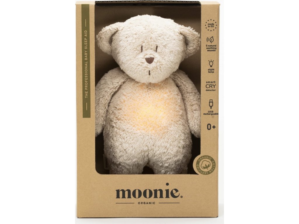 Moonie usínáček v podobě roztomilého medvídka s nočním světlem a relaxačními zvuky pomáhá miminku uklidnit se a snáze usnout. Uklidňující zvuky připomínají dítěti prostředí v děloze maminky před jeho narozením. Usínáček nabízí pět přírodních relaxačních zvuků (tlukot srdce, vítr, lesní potok, mořské vlny, déšť), kalimba ukolébavku, dvě klasické ukolébavky a umožňuje nahrání vlastního hlasu.