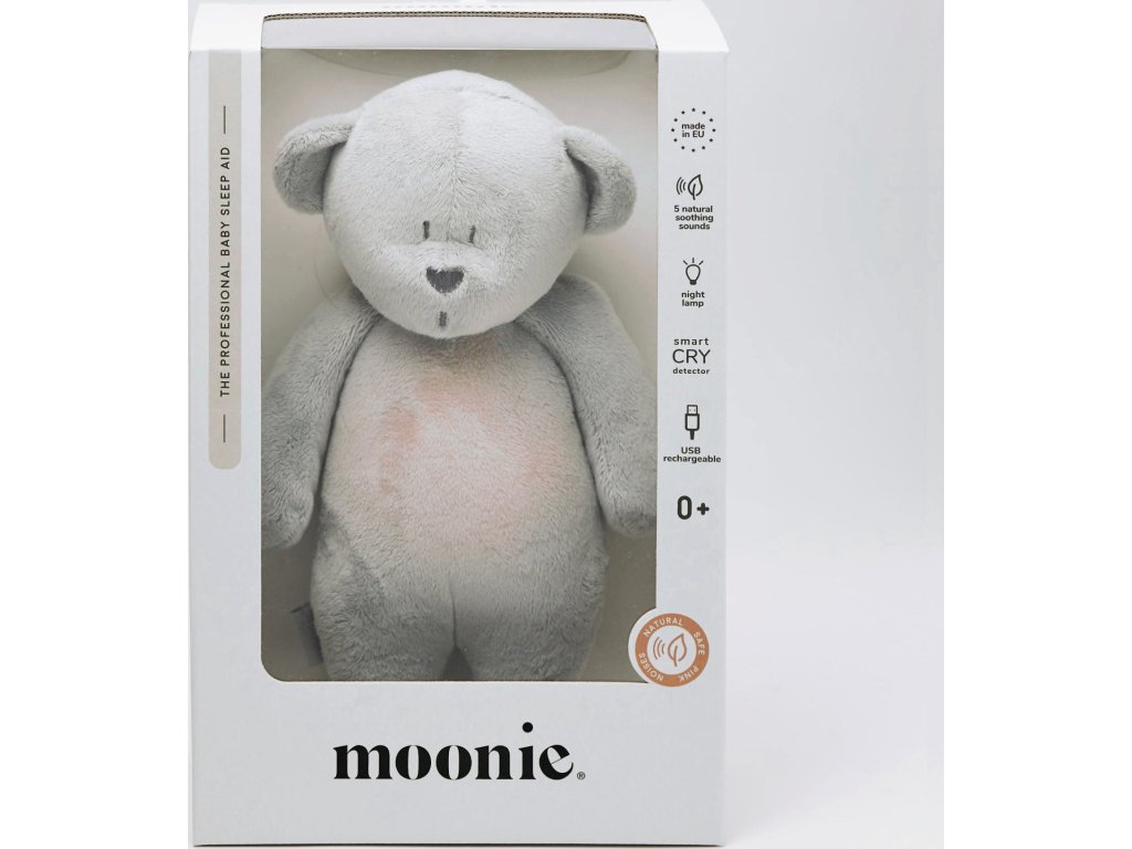 Moonie usínáček v podobě roztomilého medvídka s nočním světlem a relaxačními zvuky pomáhá miminku uklidnit se a snáze usnout. Uklidňující zvuky připomínají dítěti prostředí v děloze maminky před jeho narozením. Usínáček nabízí pět přírodních relaxačních zvuků (tlukot srdce, vítr, lesní potok, mořské vlny, déšť), kalimba ukolébavku, dvě klasické ukolébavky a umožňuje nahrání vlastního hlasu.