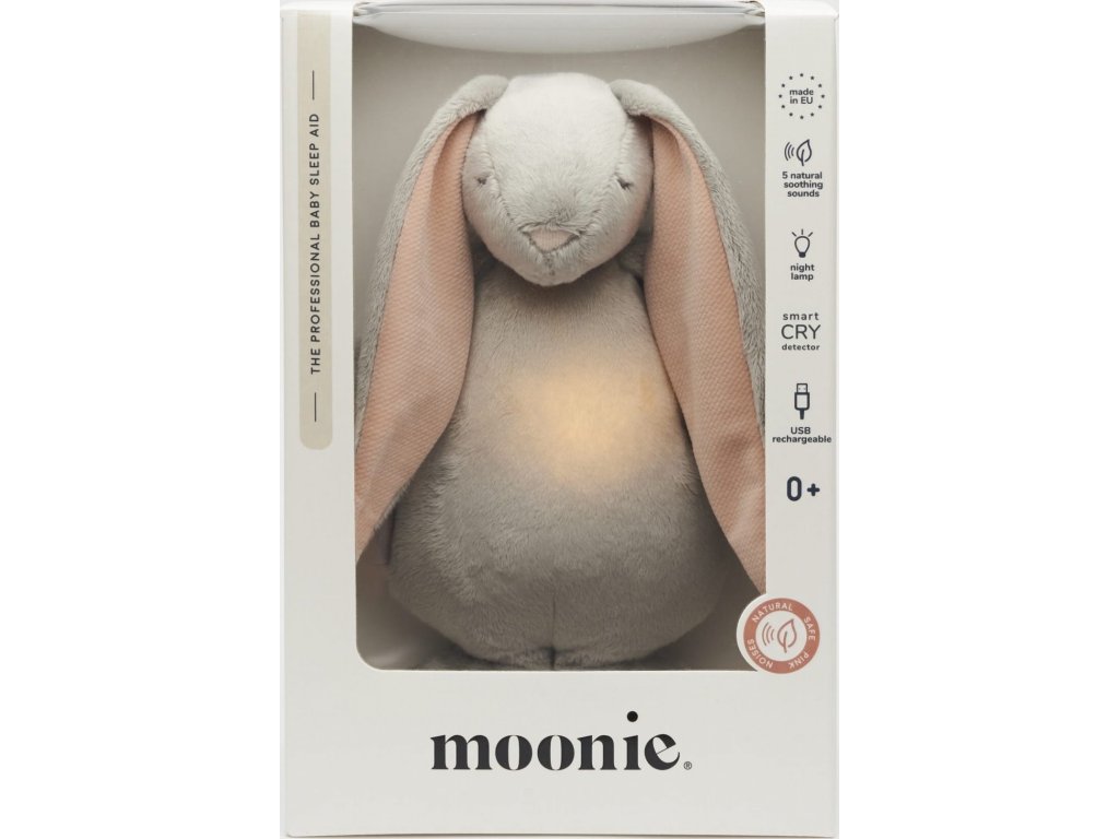 Moonie usínáček v podobě roztomilého zajíčka s nočním světlem a relaxačními zvuky pomáhá miminku uklidnit se a snáze usnout. Uklidňující zvuky připomínají dítěti prostředí v děloze maminky před jeho narozením. Usínáček nabízí pět přírodních relaxačních zvuků (tlukot srdce, vítr, lesní potok, mořské vlny, déšť), kalimba ukolébavku, dvě klasické ukolébavky a umožňuje nahrání vlastního hlasu.
