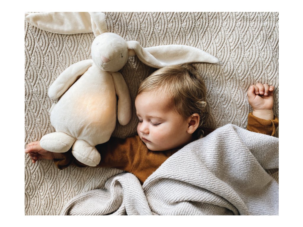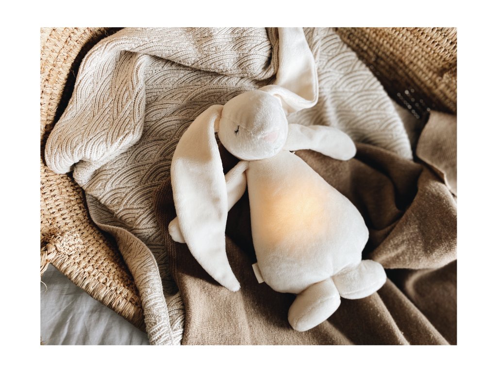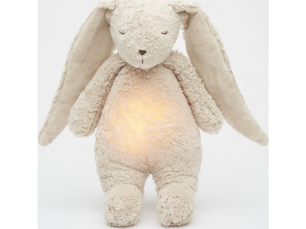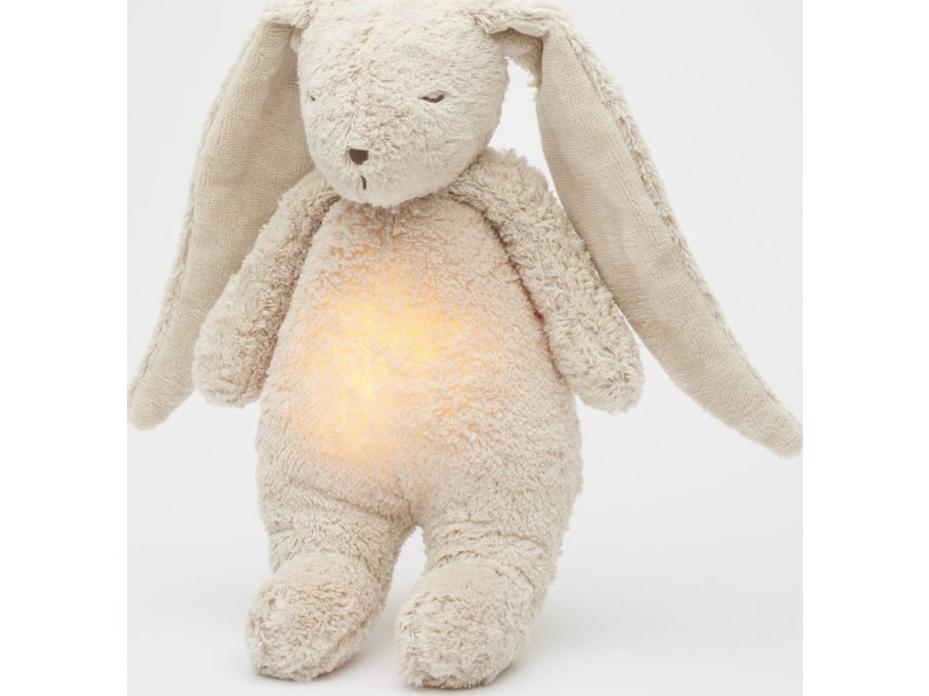 Bříško zajíčka svítí a slouží jako noční světlo s výběrem sedmi barev svícení. Jemné světlo pomáhá dítěti cítit se v postýlce bezpečně. Světlo je možné zapnout i bez zvuků. Při zapnuté funkci Shake světlo zapnete zatřesením hračkou. Zajíček se při svícení nijak nezahřívá a je pro dítě zcela bezpečný.