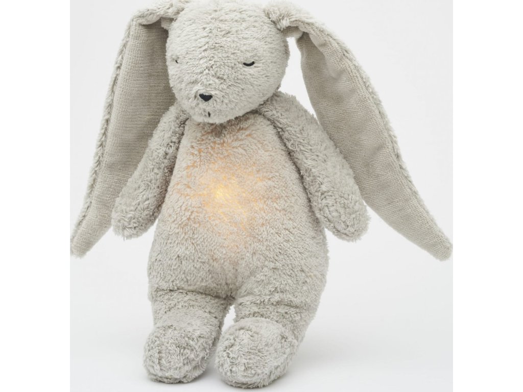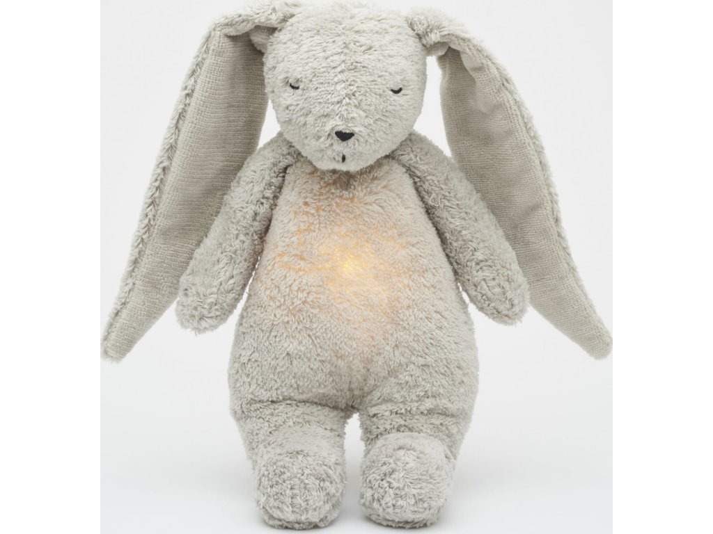 Bříško zajíčka svítí a slouží jako noční světlo s výběrem sedmi barev svícení. Jemné světlo pomáhá dítěti cítit se v postýlce bezpečně. Světlo je možné zapnout i bez zvuků a nechat jej svítit po celou noc. Zajíček se při svícení nijak nezahřívá a je pro dítě zcela bezpečný.