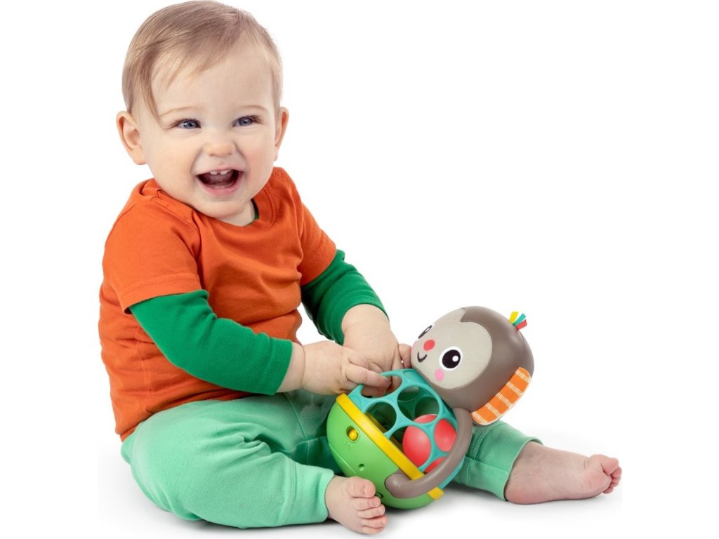 - Uchopte, protřepejte a prozkoumejte Bright Starts Grab & Giggle Monkey, abyste aktivovali jednoduché zvuky, chichotání a vícebarevná světla; obsahuje míček s chrastícími korálky, plyšovou tvář/ouška a saténové stuhy, vše v jedné hračce.