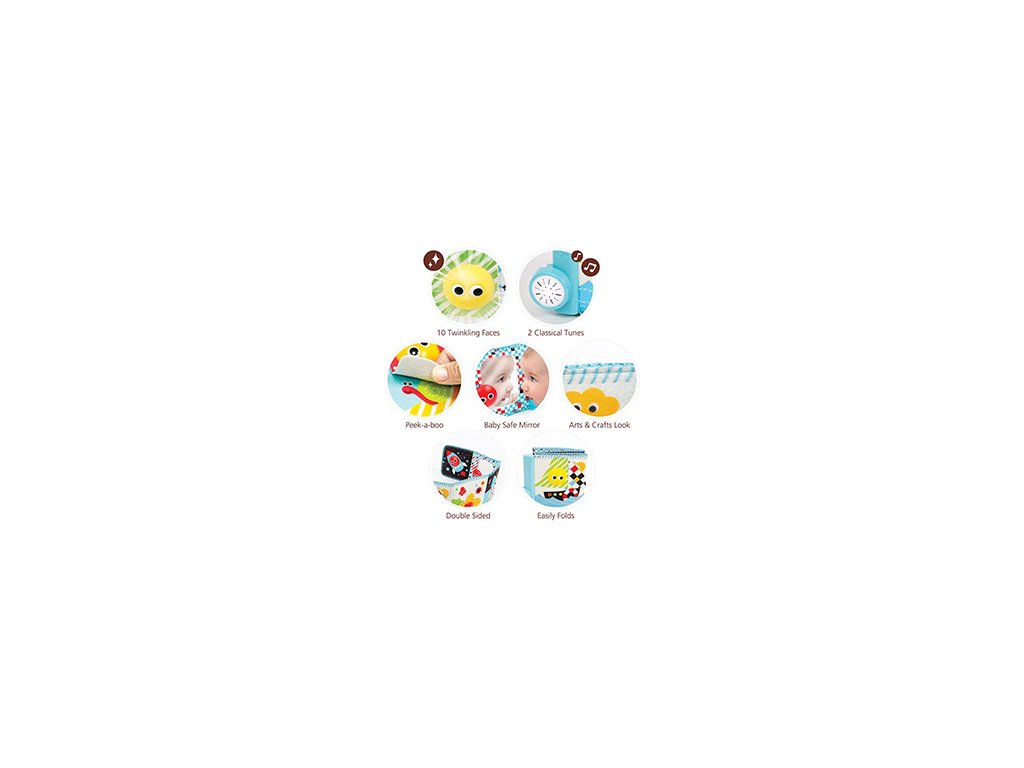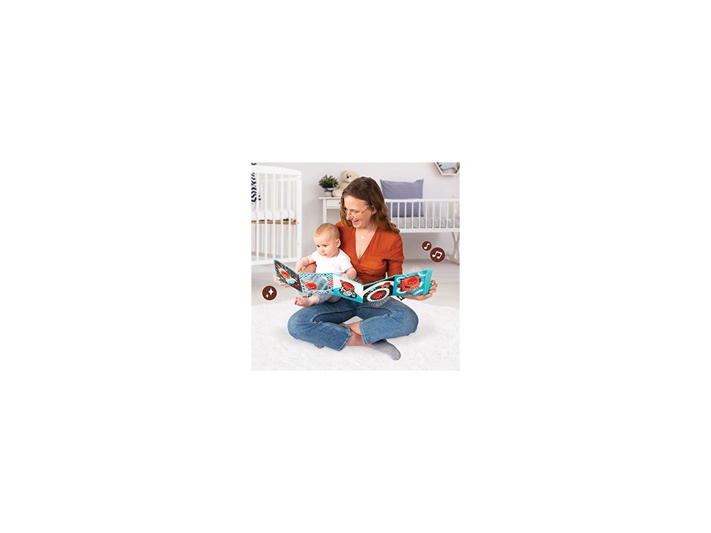 Kniha hraje uklidňující melodii Chopina a povzbuzující melodii Haydena. Současně se zvolenou hudbou se na mantinelu rozsvěcují přátelské tváře jedna po druhé a povzbuzují tak dítě je sledovat, zvedat hlavu a ramena.