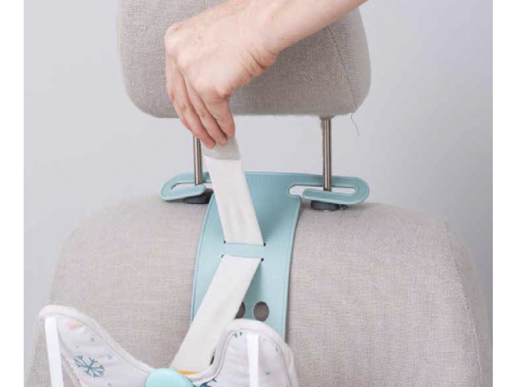 Pultík snadno připevníte k opěrce hlavy předního sedadla a s pomocí suchých zipů nastavíte tak, aby dítě na pultík rukama i nožičkami dosáhlo.