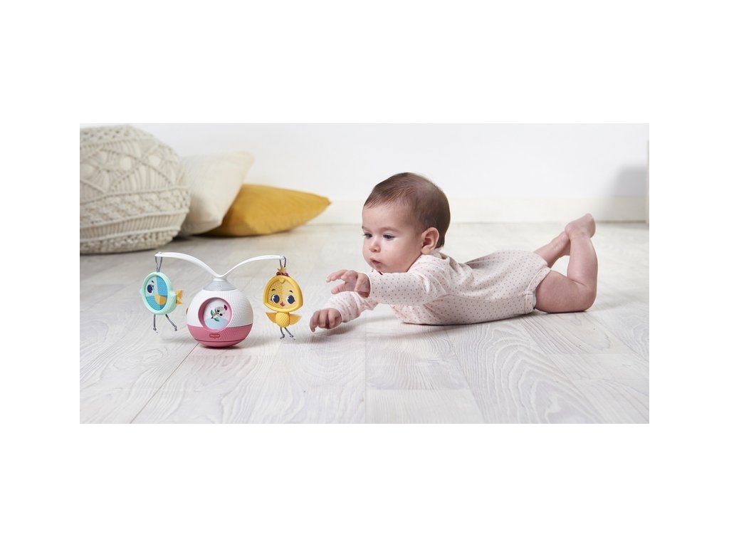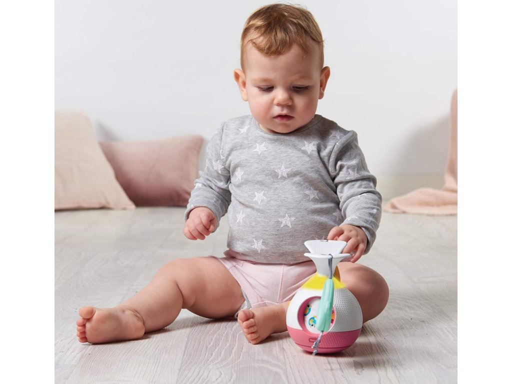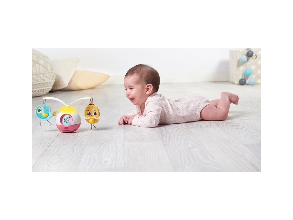 Unikátní hudební box s hudbou, světýlky a otočnými rameny podněcuje dítě ke hře na bříšku. Pro malého kojence, který tráví většinu dne i noci ležením na zádech, je důležité, aby trávil několikrát denně čas ležením na bříšku a takzvaným “pasením koníčků”. Poloha na bříšku přináší děťátku jiný pohled na svět a posiluje krční a zádové svaly, které později umožňují dítěti začít se přetáčet, lézt a sedět bez opory. Hudební box nabízí dítěti aktivity, které ho udrží déle spokojené v poloze na bříšku.