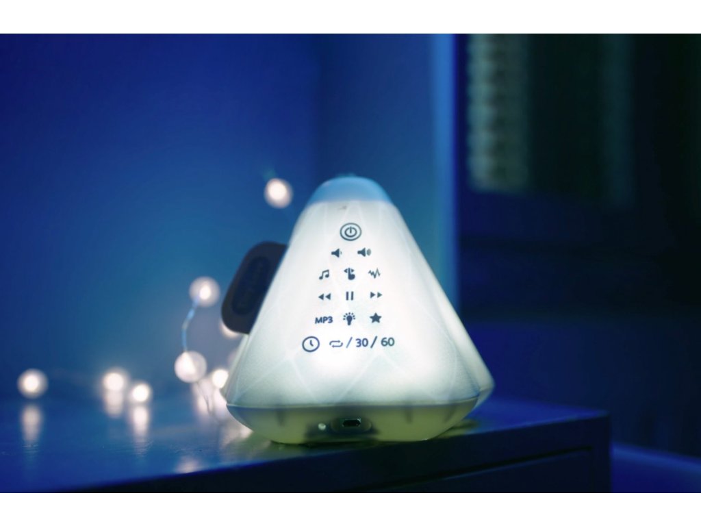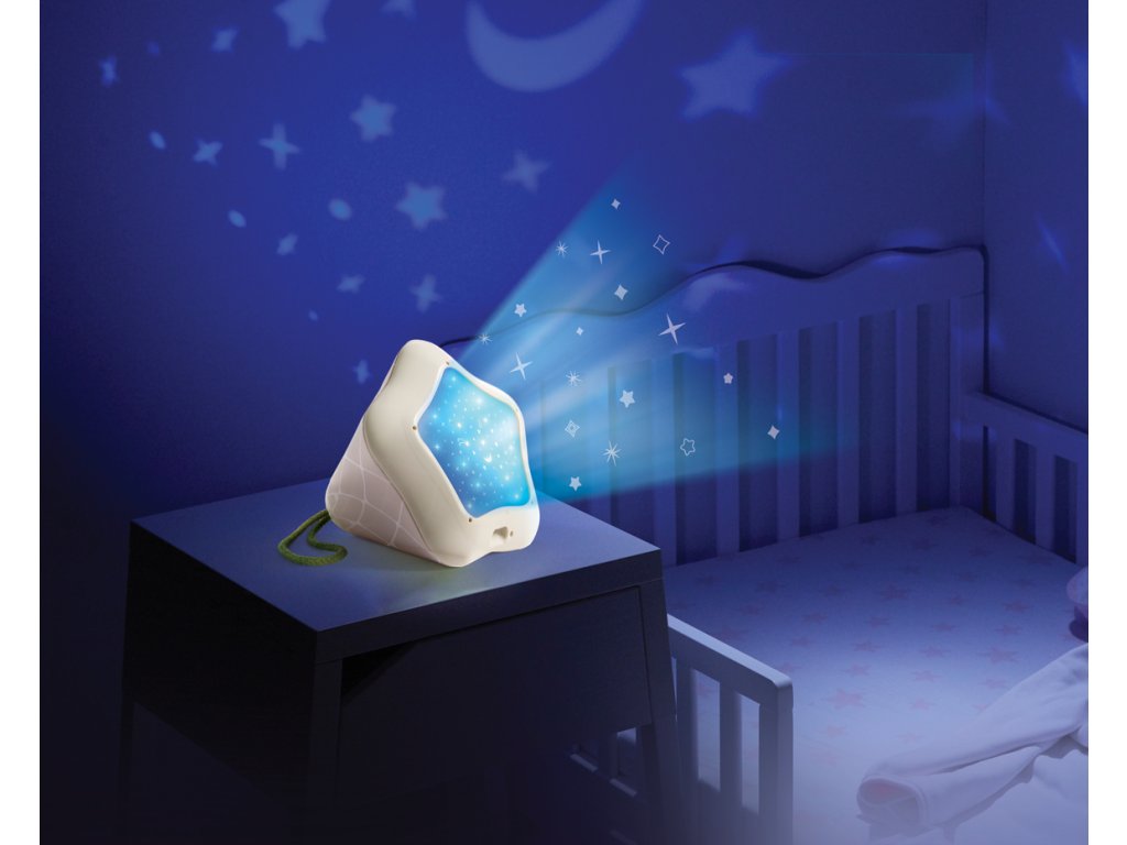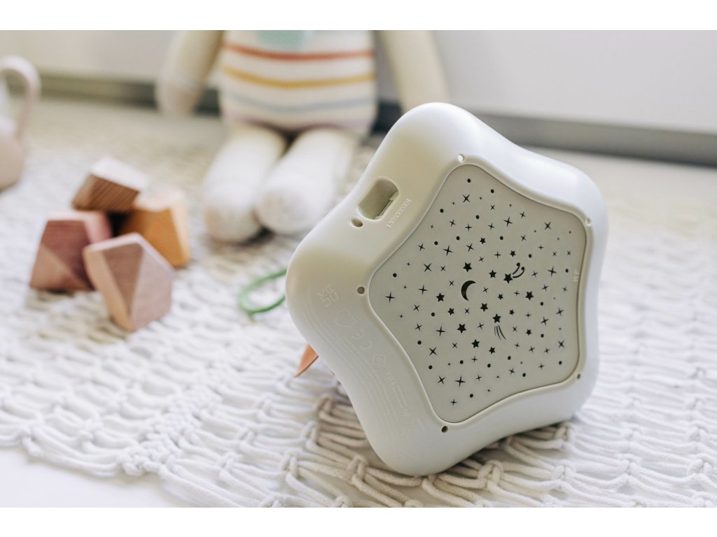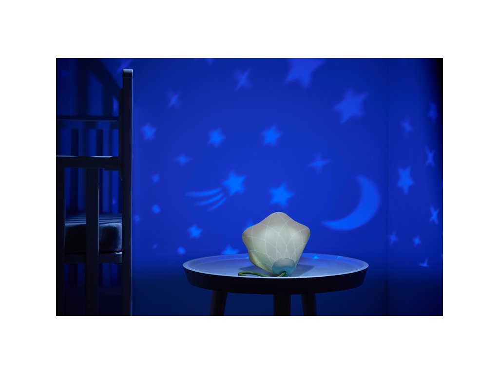 Hudební box s projekcí pomůže zklidnit a utišit vaše dítě před spaním. Nabízí několik variant použití - jako noční lampičku s jemným teplým světlem, jako projektor noční oblohy s hvězdičkami na stěnu i jako přenosnou lampičku do ruky. Senzor pláče umožňuje automatické rozsvícení, když dítě začne v noci plakat.