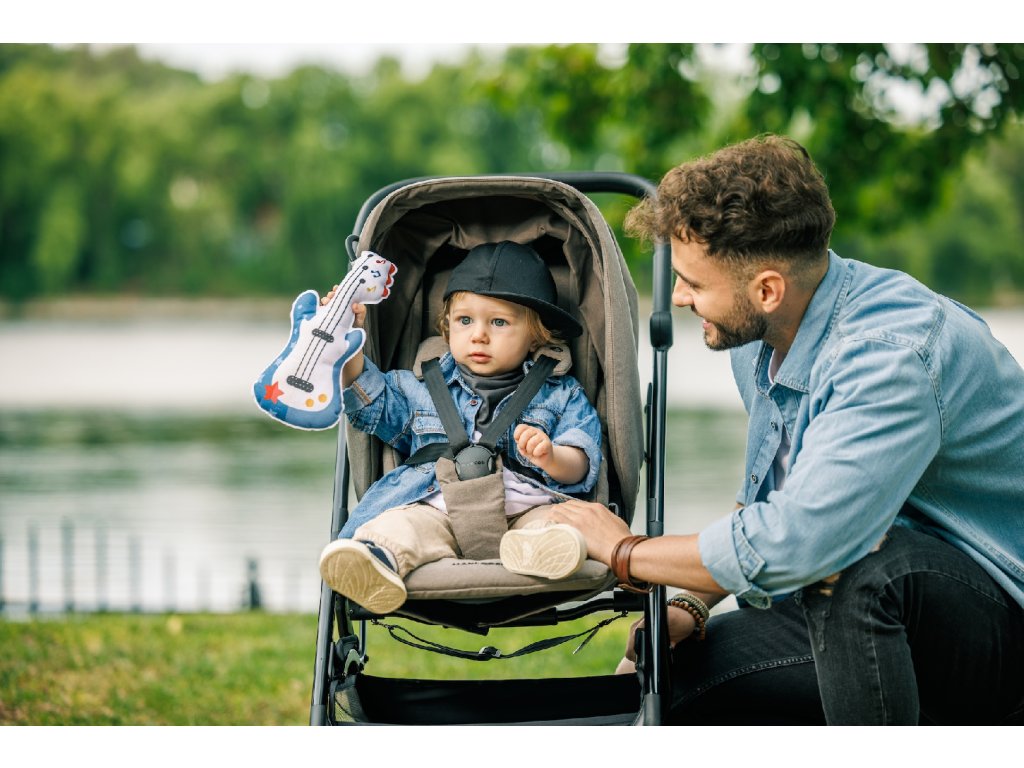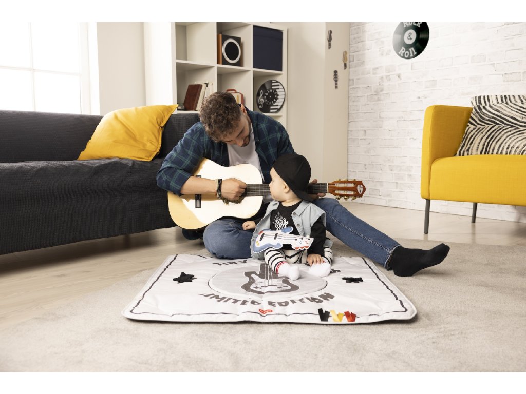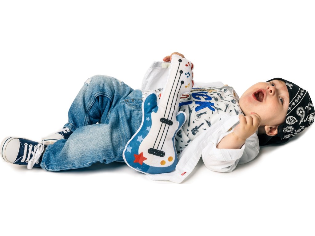 První kytara pro vašeho malého rockera či rockerku je vyrobena z měkkého textilního materiálu a po zmáčknutí přehrává 7 různých rockových melodií a zvuků. Díky plastovému kroužku je možné ji zavěsit na autosedačku či kočárek, aby mohla vaše dítě zabavit i na cestách. Kytara je ideální i pro hraní na bříšku.