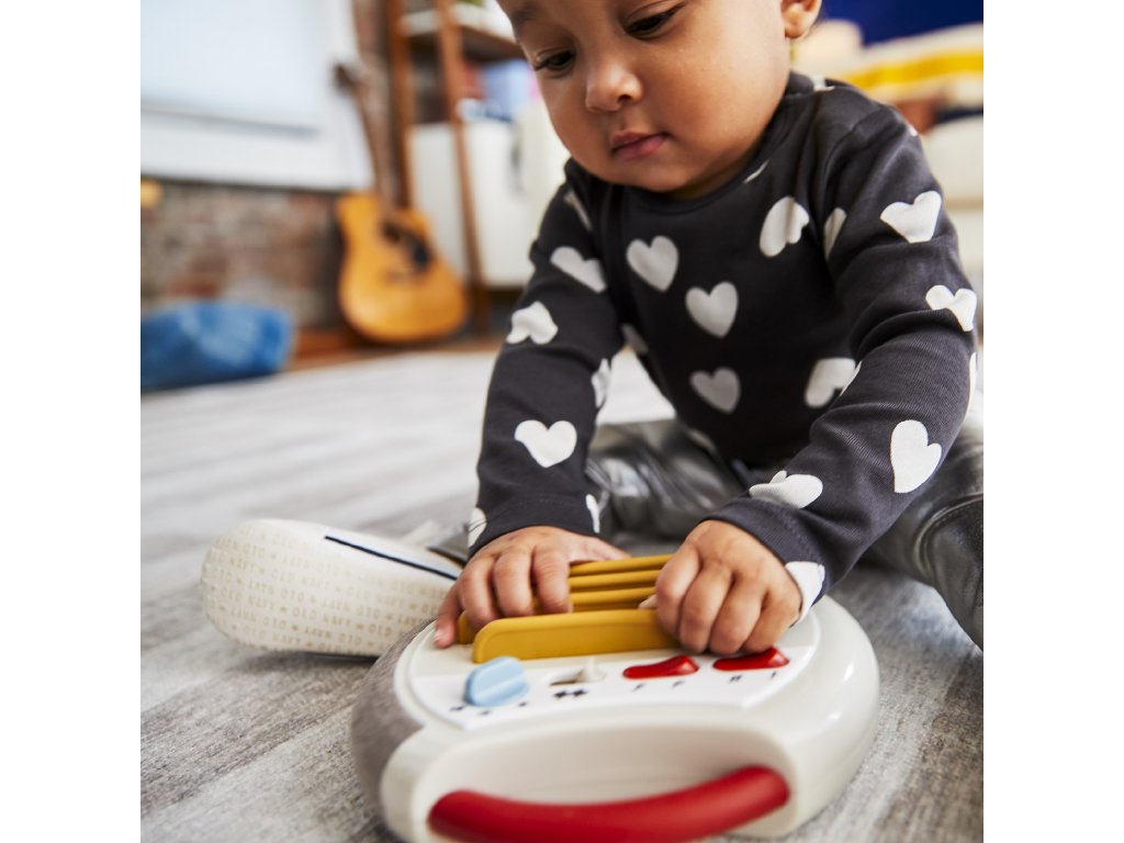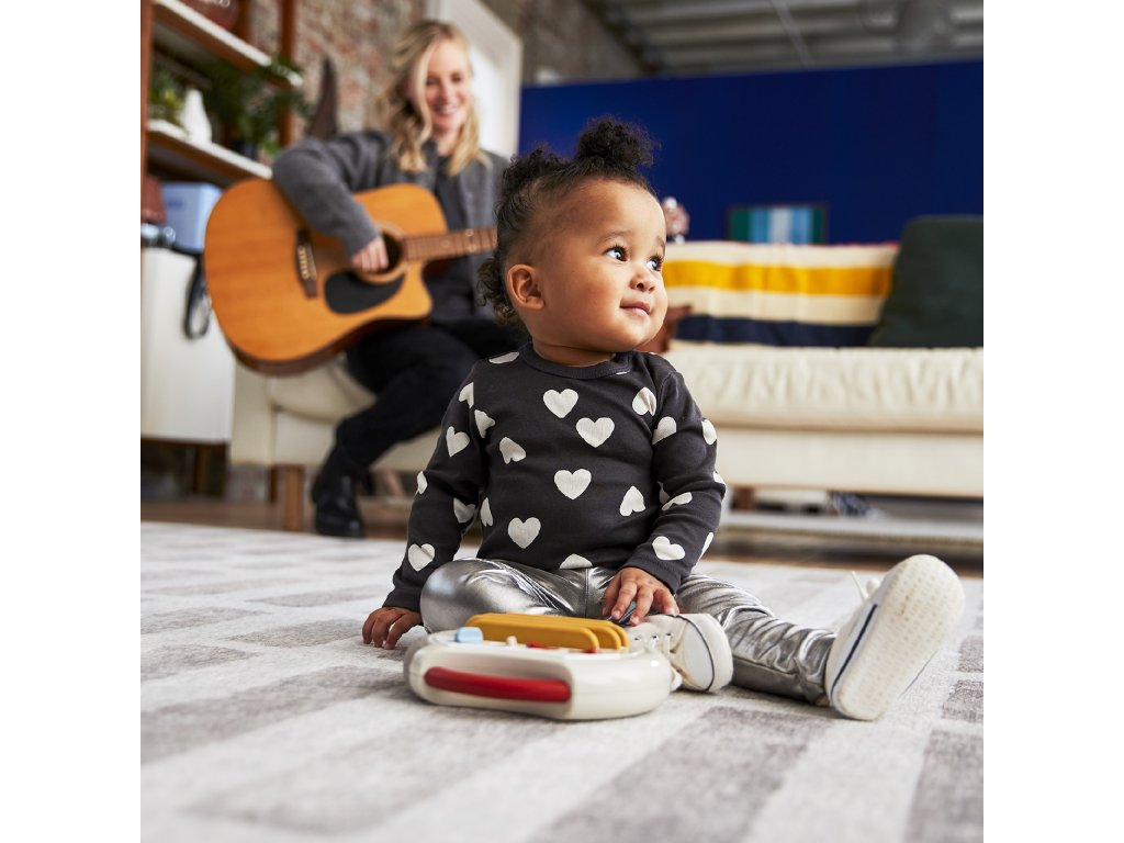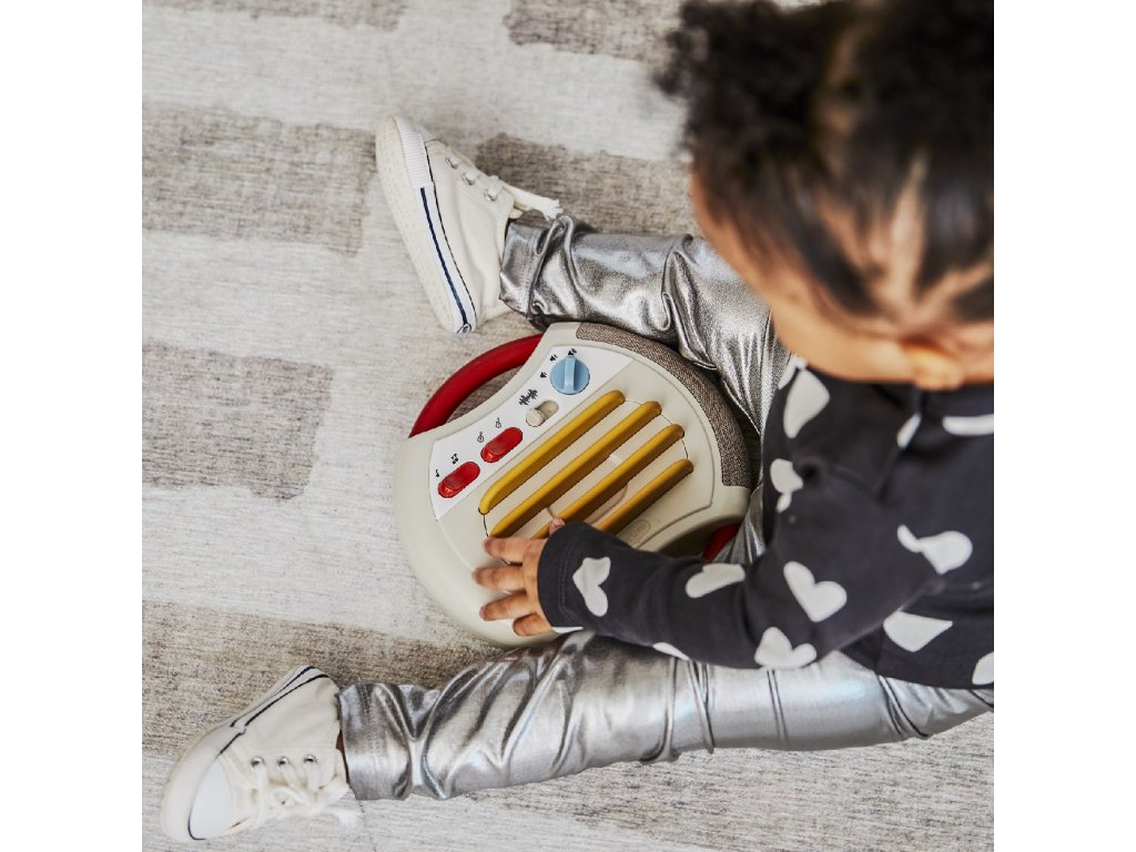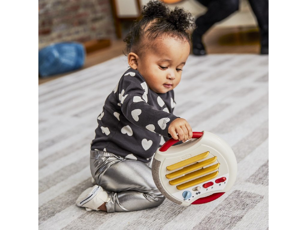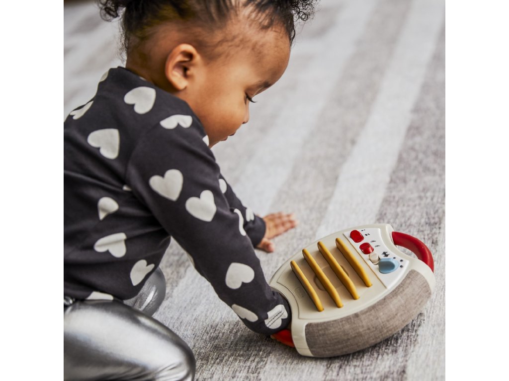 Hudební kytara Tiny Love je poutavá hračka, která zábavným způsobem pomáhá rozvíjet emoce a kreativitu vašeho dítěte. Hračka nabízí 8 rockových melodií a umožňuje dítěti poslouchat hudbu nebo ji použít jako hudbu na pozadí pro vlastní muzicírování. Každá ze 4 strun napodobuje zvuk strun kytary, navíc lze přepínat mezi klasickými nebo elektronickými zvuky. Pomocí posuvníku výšky můžete vytvářet zvukové efekty. Kytara s kvalitním reproduktorem je vybavena možností vypnutí a nabízí 3 úrovně hlasitosti.