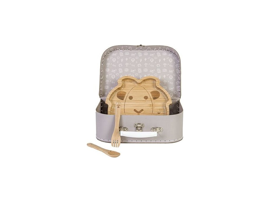 Uvnitř se skrývá bambusový talíř s přísavkou ze spodní strany ve tvaru Lva a bambusový příbor. Čas oběda se stane zábavou, díky kufříku můžete mít věci stále při sobě.