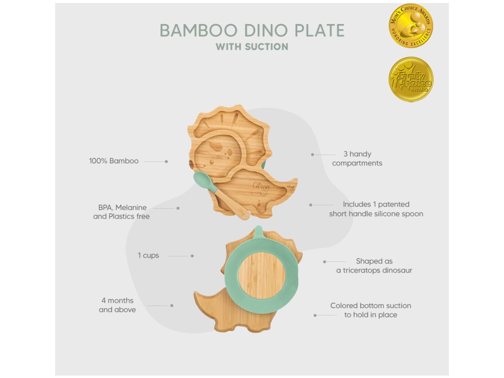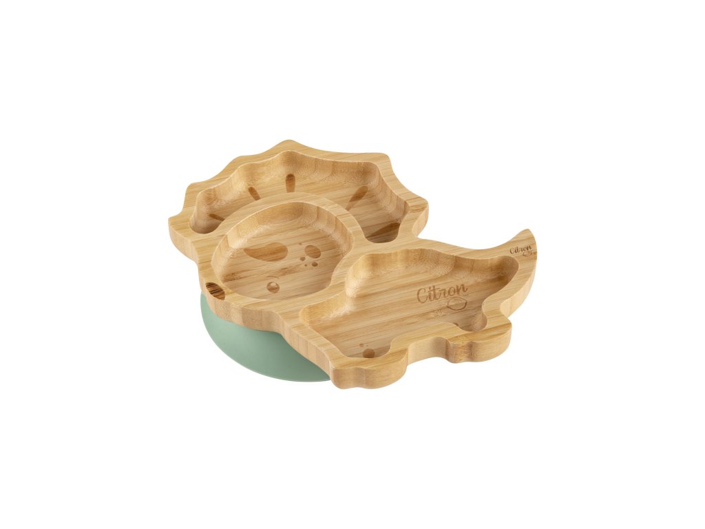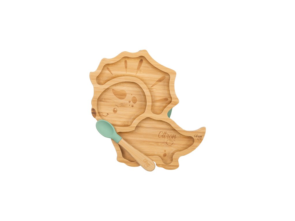 Citron Bambusový talířek s přísavkou a lžičkou - Dino