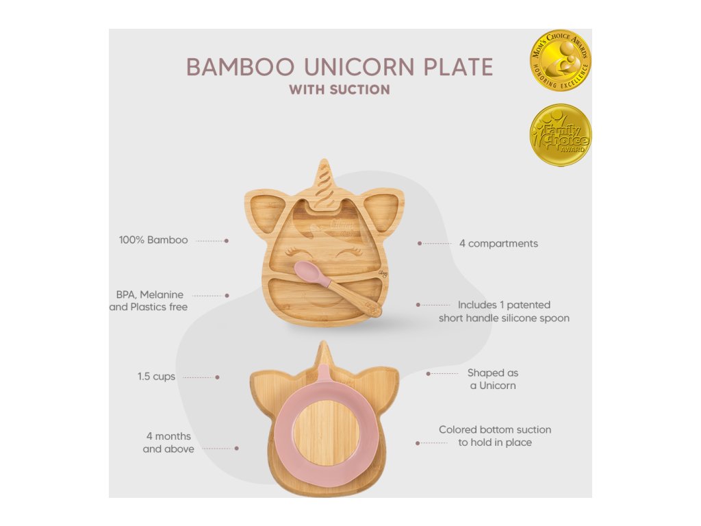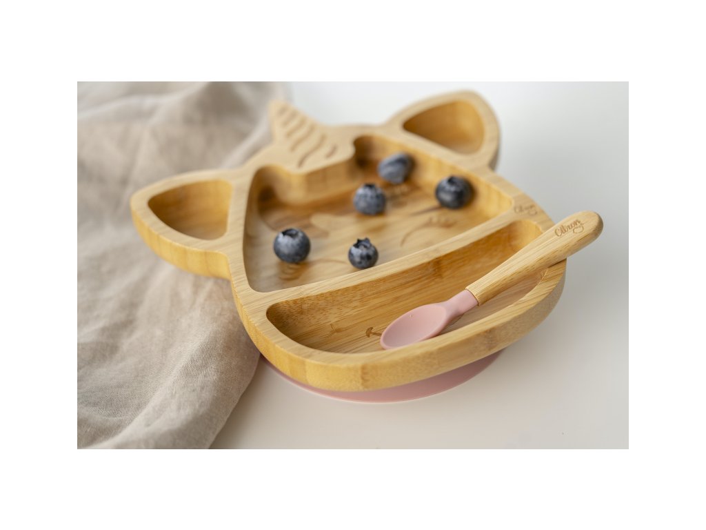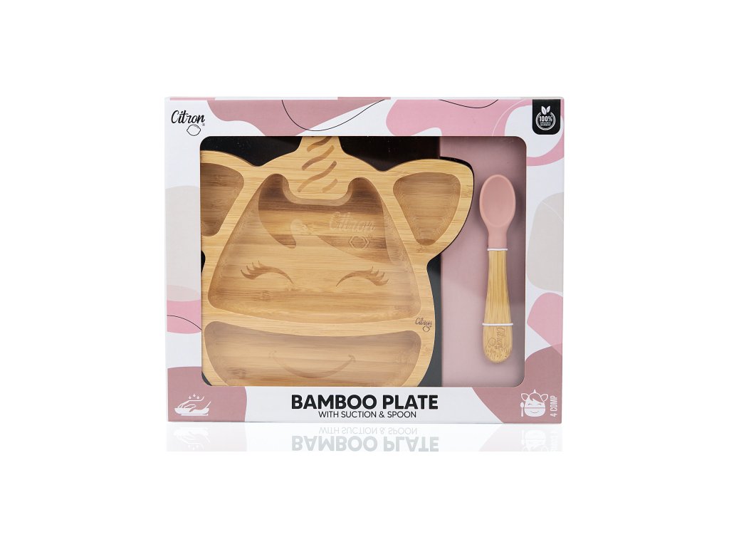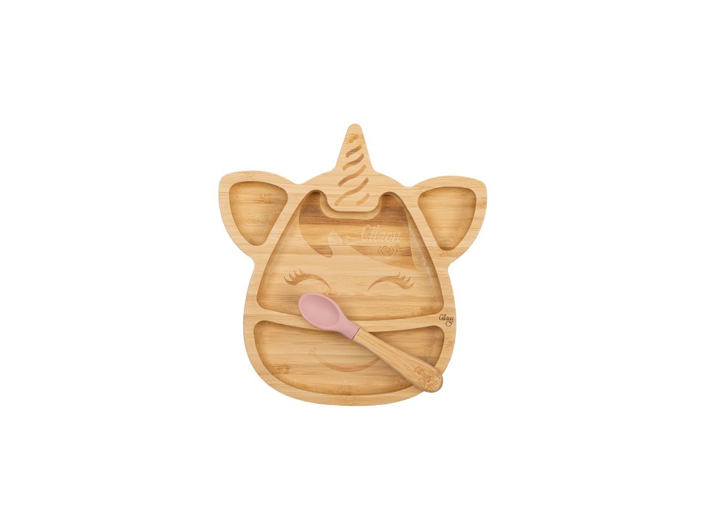 Citron Bambusový talířek s přísavkou a lžičkou - Jednorožec