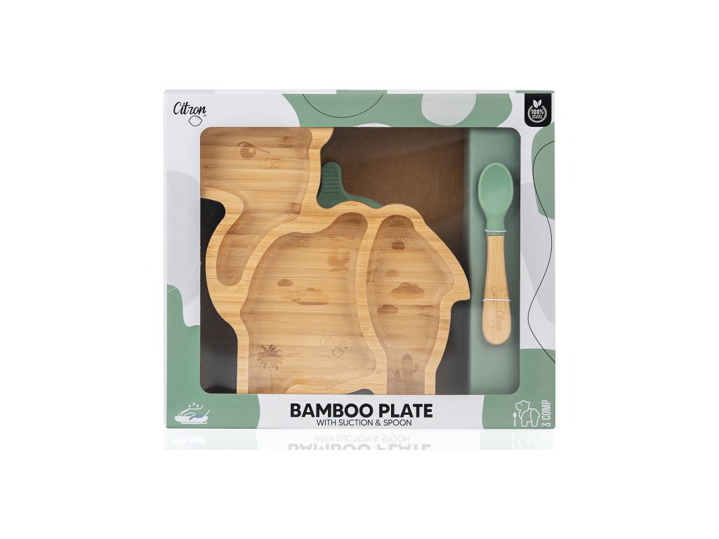 Citron Bambusový talířek s přísavkou a lžičkou - Velbloud