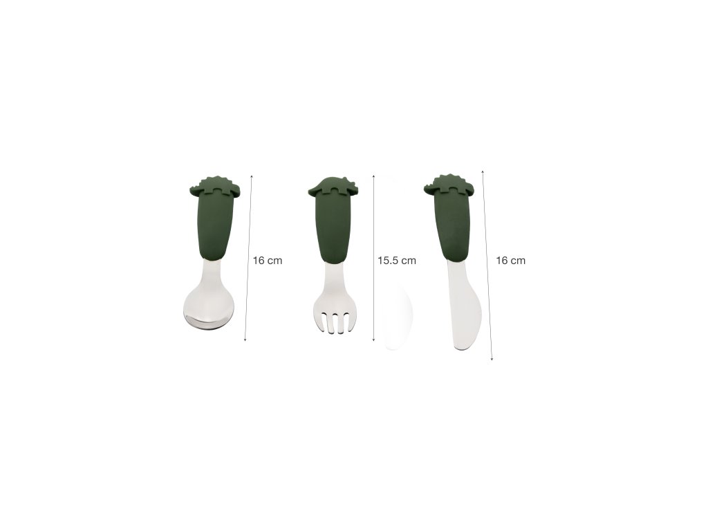 - Rozměry: 16 cm (lžička), 15,5 cm (vidlička), 16 cm (nůž)