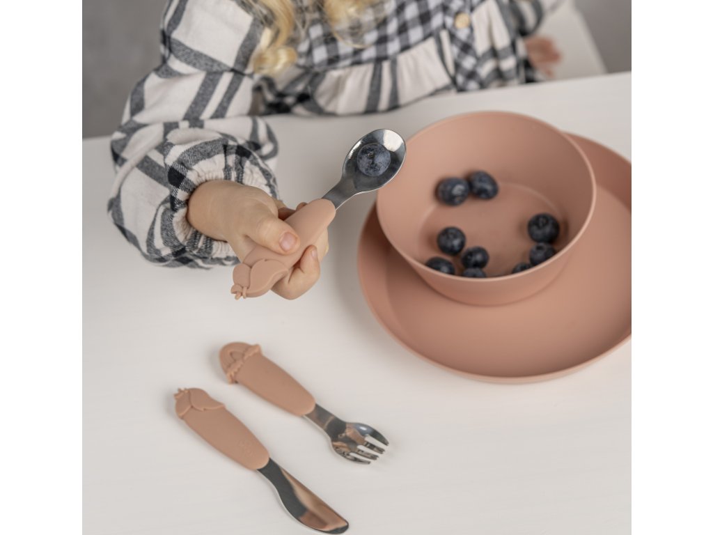 Příbory jsou vyrobeny z potravinářské nerezové oceli třídy 304 prodlužující životnost výrobku, rukojeti jsou ze silikonu.