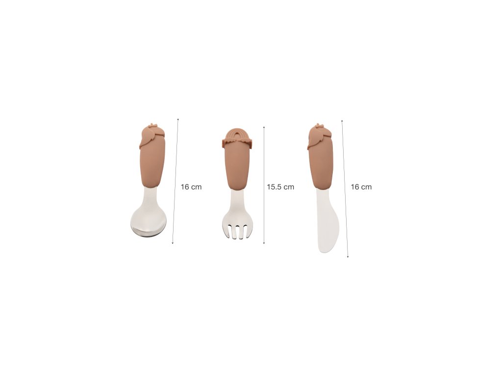 - Rozměry: 16 cm (lžička), 15,5 cm (vidlička), 16 cm (nůž)