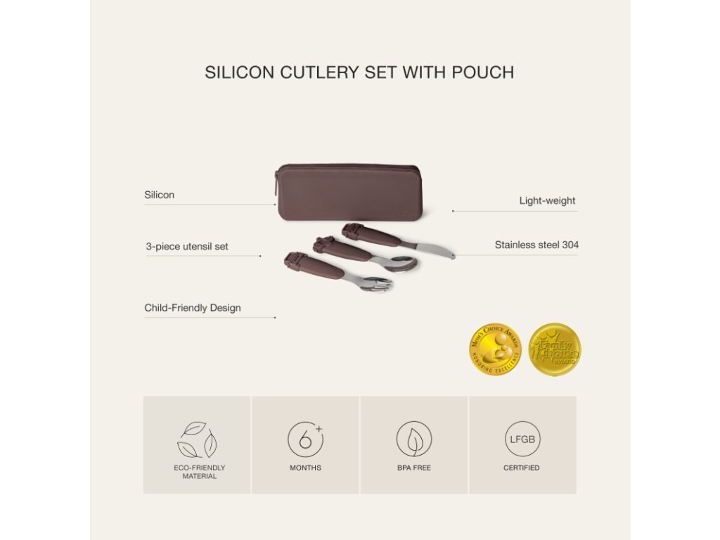 - Sada zahrnuje: 13,1 cm dlouhou lžičku, 12,6 cm dlouhou vidličku, 14,2 cm dlouhý nůž a silikonové pouzdro o rozměrech 17,7 x 7 x 3,5 cm