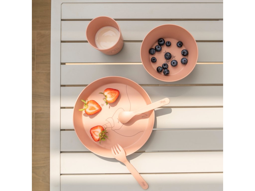 Tento jídelní set je vyrobený ze 100% PLA (kukuřičný škrob nebo cukrová třtina z ekologického zdroje).