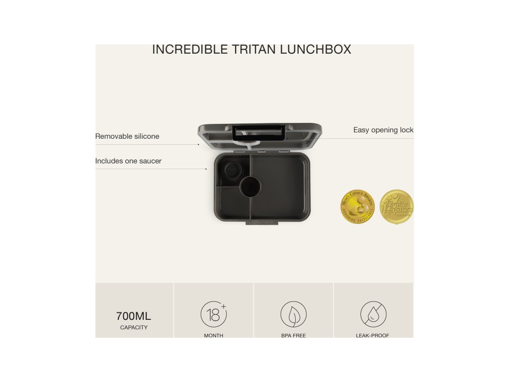 Tento obědový box je vyrobený z plastu Tritan, tedy materiálu, který prodlužuje životnost vašeho výrobku, a navíc je šetrný k životnímu prostředí.