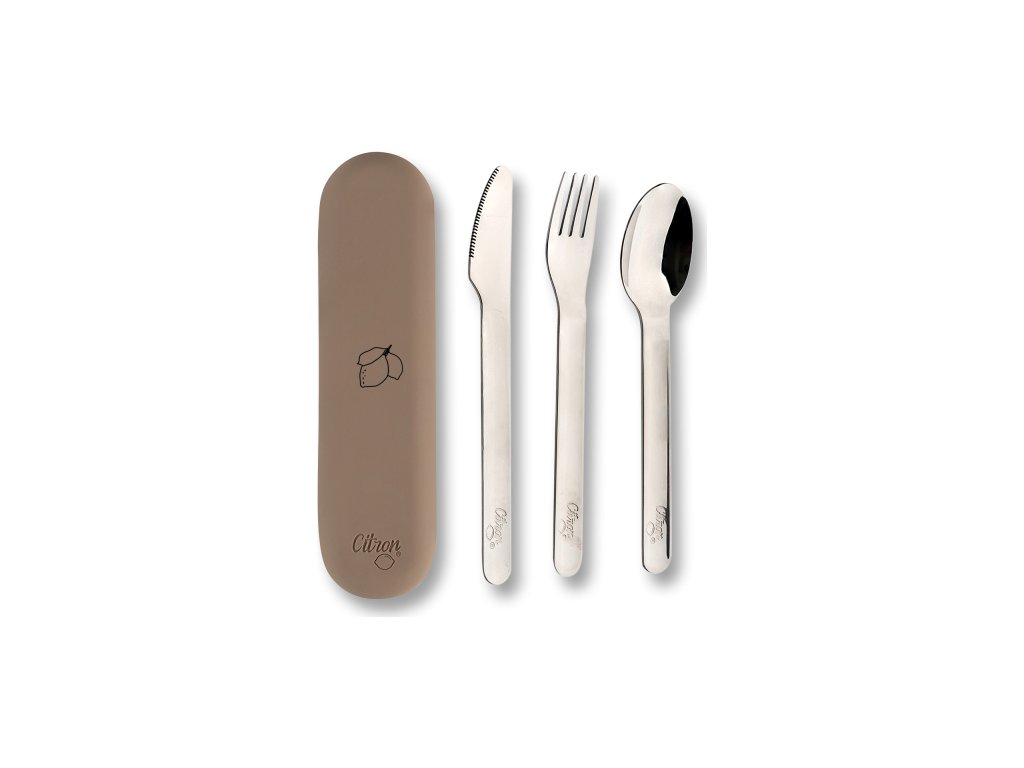 Citron Set příborů se silikonovým pouzdrem - Brown / Lemon