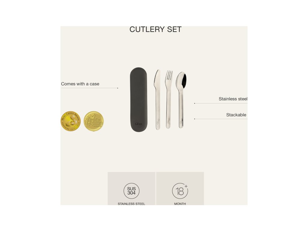 Příbory jsou vyrobeny z potravinářské nerezové oceli třídy 304 prodlužující životnost výrobku, zatímco pouzdro je vyrobeno z bezpečného silikonu.