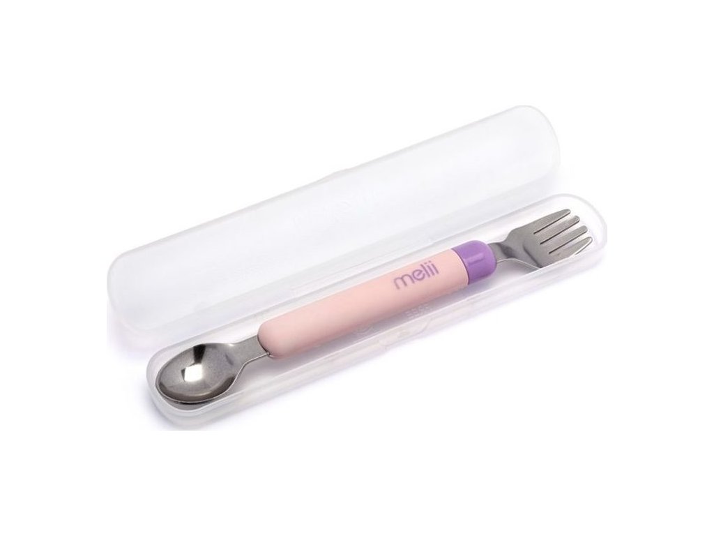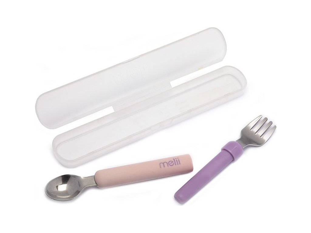 Dětská vidlička a lžička s pouzdrem - růžová/fialová