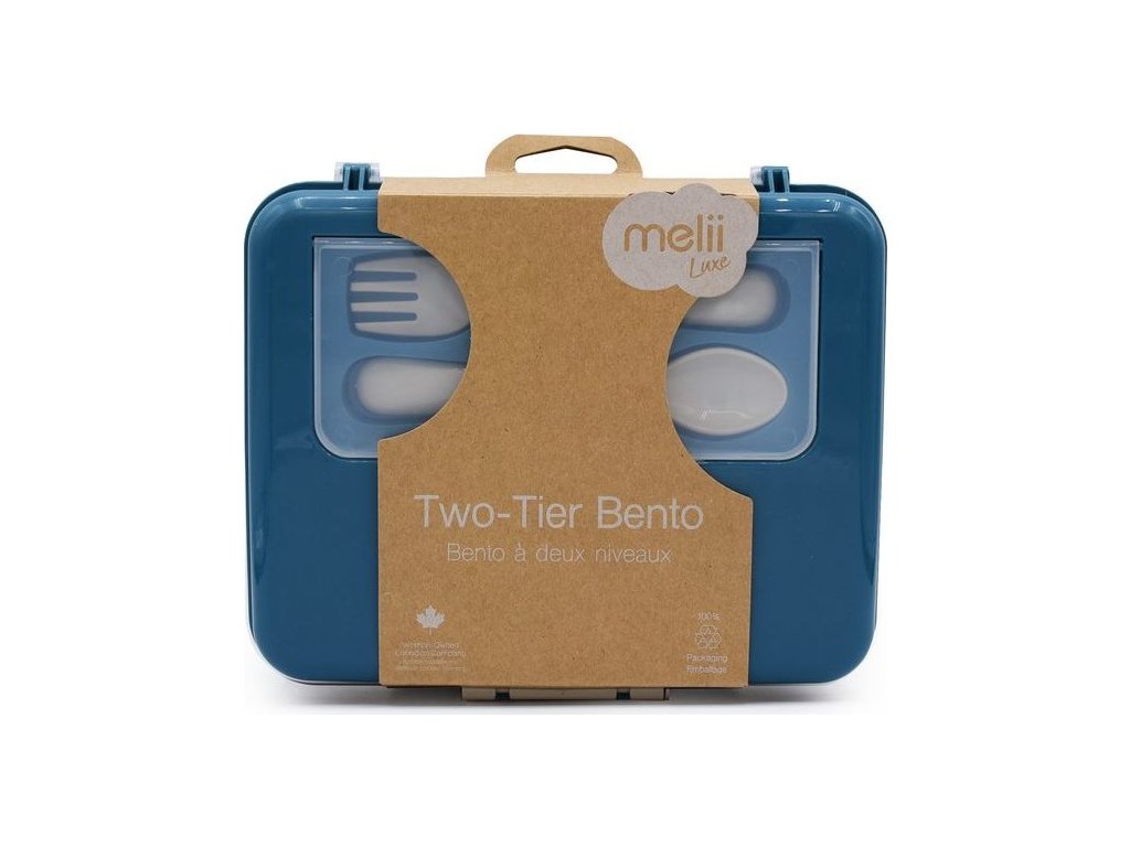 Díky tomuto dvoupatrovému bento boxu na svačinu značky Melii z kolekce Luxe Colors můžete mít svou oblíbenou svačinu či oběd, doma, ve škole či na cestách vždy s sebou! Tato skvělá svačinová krabička je vhodná nejen pro děti, ale i dospělé. Barevné víčko má velkou pojistku, která dětem usnadňuje otevírání a podporuje jejich samostatnost. Součástí krabičky je také vidlička a lžíce, které jsou integrované ve vlastní přihrádce s víčkem, a tak příbor zůstane hygienicky čistý.