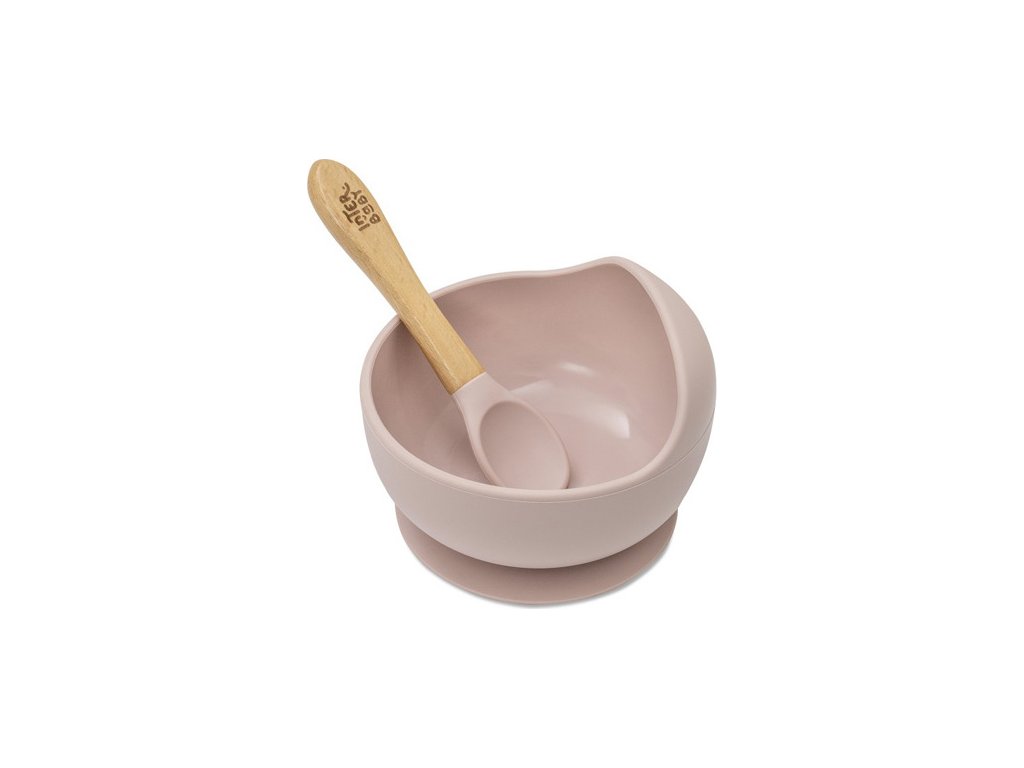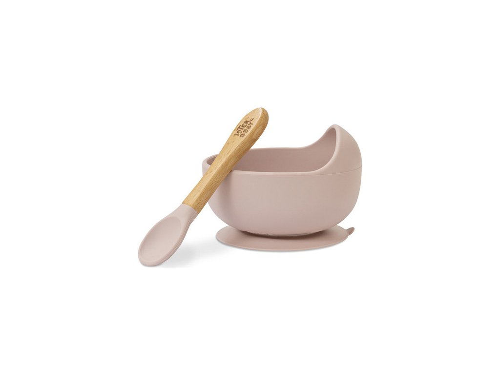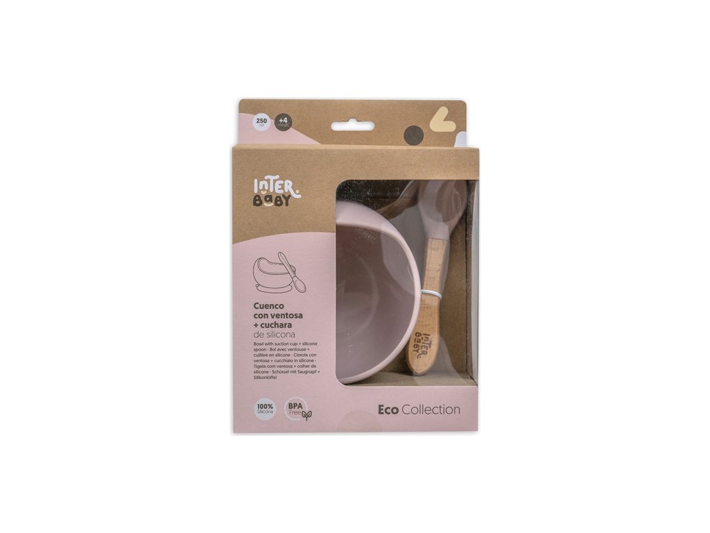 INTERBABY | MISKA silikonová + LŽIČKA silikonová +4 m - růžová