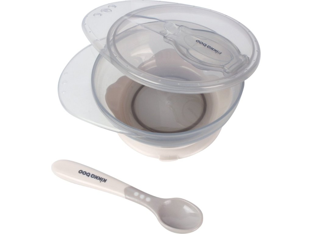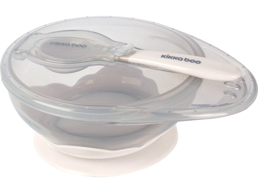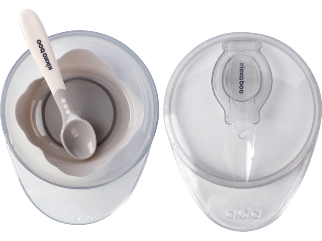 KikkaBoo Miska s přísavkou, víčkem a lžičkou Beige