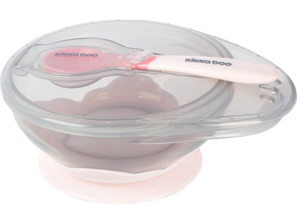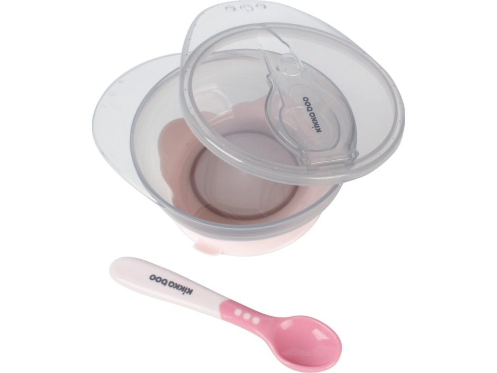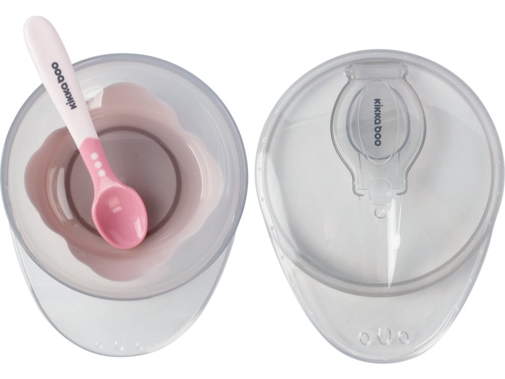 KikkaBoo Miska s přísavkou, víčkem a lžičkou Pink