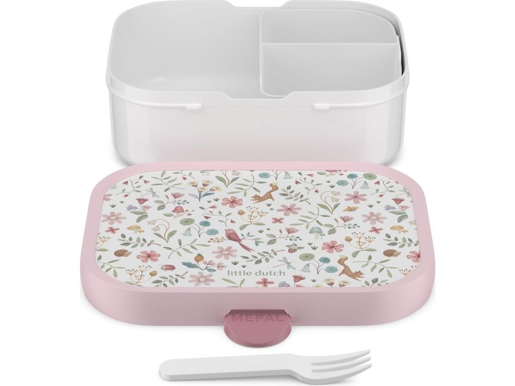 Praktický svačinový box nabízí možnost rozdělení na tři přihrádky pro oddělení jednotlivých částí uložené svačinky. Součástí boxu je i malá vidlička, která je ideální pro napichování kousků ovoce či zeleniny. Zacvakávací uzávěr je zárukou bezpečného uzavření obsahu boxu.