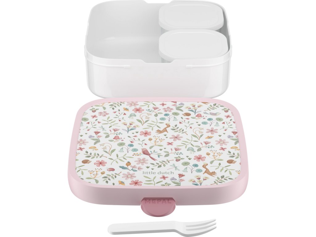 Velký svačinový box má uvnitř dvě vyjímatelné krabičky s víčkem pro oddělení jednotlivých částí uložené svačinky. Součástí boxu je i malá vidlička, která je ideální pro napichování kousků ovoce či zeleniny. Zacvakávací uzávěr je zárukou bezpečného uzavření obsahu boxu.