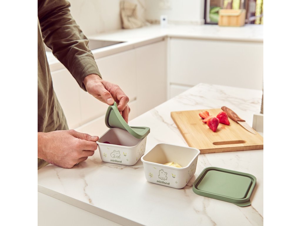 Misky s krásným potiskem jsou vyrobeny z materiálu 100% přírodního původu. Misky jsou ideální pro bezpečné uchování doma připravených dětských příkrmů. Hermetické silikonové víčko chrání obsah misky a pomáhá udržet příkrm déle čerstvý.