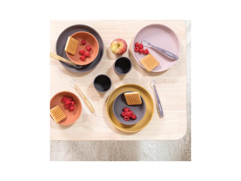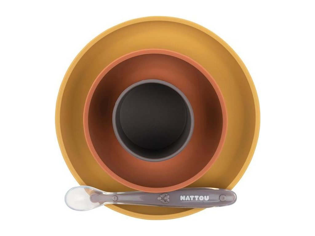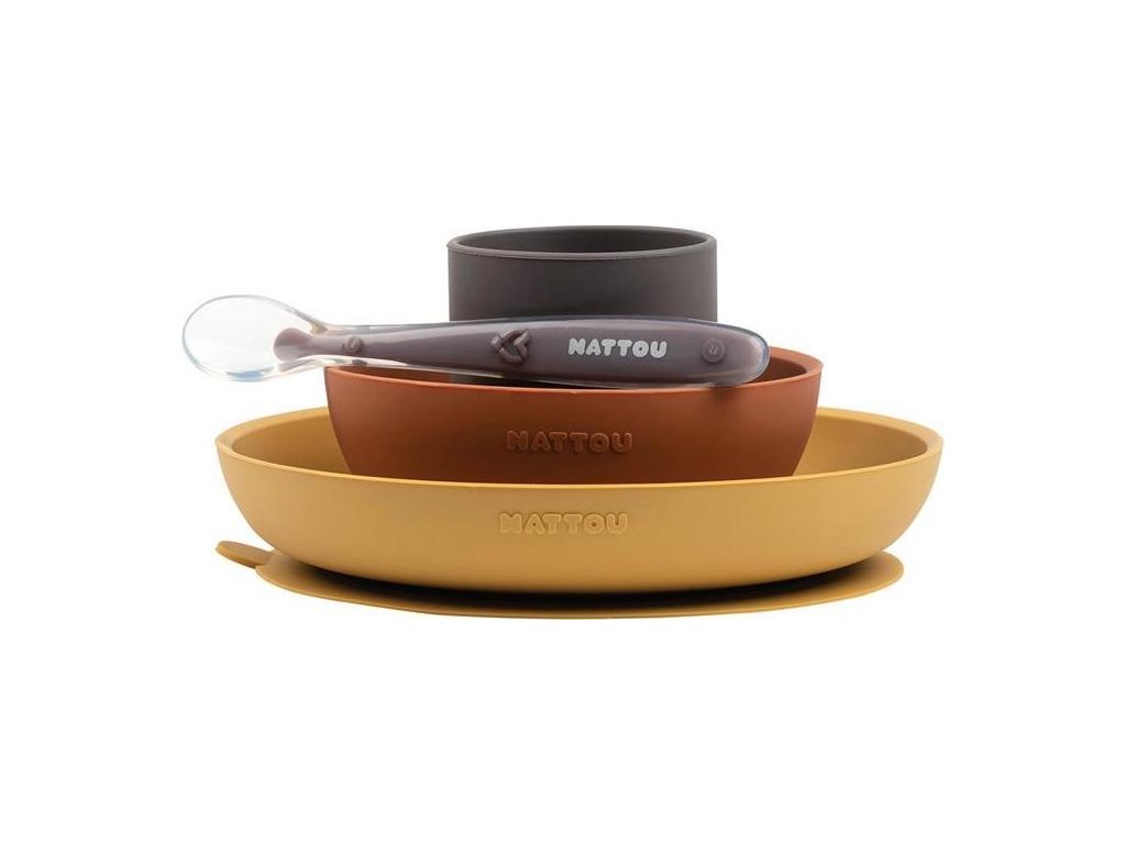 NATTOU NATTOU Set jídelní silikonový 4 ks hnědo-terakotový bez BPA