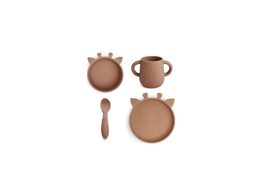 NUUROO Lykke Silikonový Jídelní set Giraf Chocolate Malt