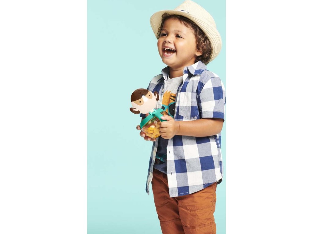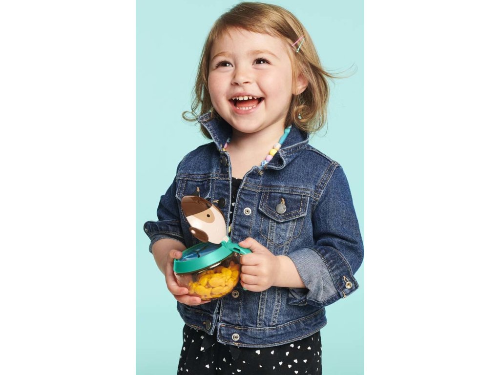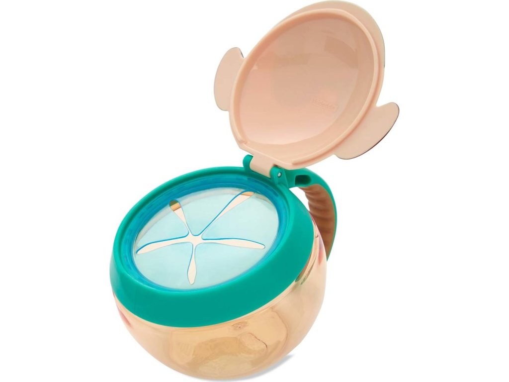 Chytrý nápad na cesty. Kalíšek má víčko, které po otevření drží, před vysypáním obsahu jej chrání pružné lamely, které pustí dětskou ručičku dovnitř, ale nepustí svačinku ven. Kalíšek je průhledný, aby se mohl zavčasu doplnit. Na boku je praktické ouško v dětském rozměru, pomocí kterého lze kalíšek připevnit i na kočárek či tašku. 0 % BPA, 0 % PVC, bez ftalátů. Obsah: 222 ml. Průměr: 10 cm