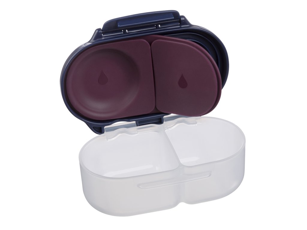 Díky flexibilnímu silikonovému víčku na jedné straně můžete do krabičky vložit celý kus ovoce (např. jablko) a do druhé třeba i jogurt nebo pyré (nikoliv tekutiny). Jednoduché otevírání umožní dětem samostatně se obsloužit.