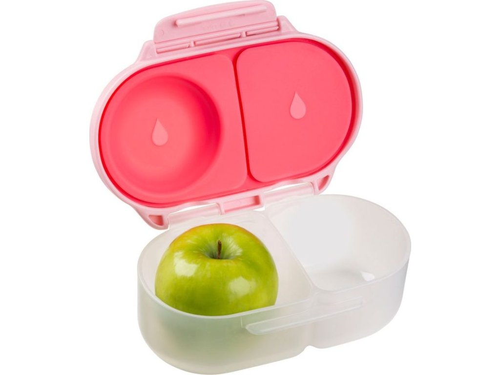 Díky flexibilnímu víčku na jedné straně můžete do krabičky vložit celý kus ovoce (např. jablko) a do druhé třeba i jogurt nebo pyré (nikoliv tekutiny). Jednoduché otevírání umožní dětem samostatně se obsloužit.