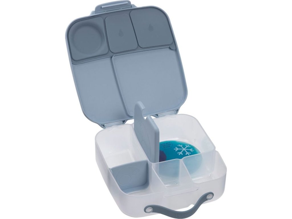Najdete zde oddělení pro půl krajíce chleba nebo sendvič, pod pohyblivým sendvičovým víčkem je ukrytý chladivý polštářek, který udrží tuto dobrotu déle čerstvou. Pokud pohyblivé víčko odstraníte, máte rázem dostatečně velký prostor pro těstoviny nebo salát. Naprosto jedinečné zpracování víčka krabičky s flexibilním silikonovým těsněním umožní vložit do krabičky celé jablko! Silikonové těsnění pak umožní skladovat v menších odděleních ovoce nebo jogurt (nikoli tekutiny). Jedna z vnitřních "přepážek" má vyjímatelný posuvný rozdělovač, se kterým si tento svačinový box přestavíte podle svých chutí a potřeb. Do krabičky se vejde i wrap nebo banán.