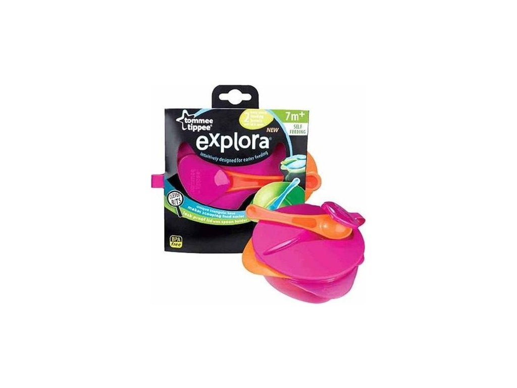 TOMMEE TIPPEE Misky pro snadné nabírání Explora s víčkem a lžičkou, 2 ks