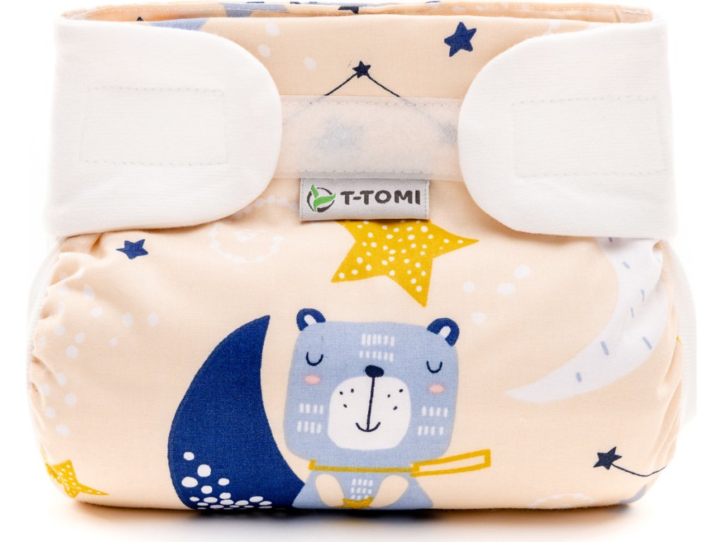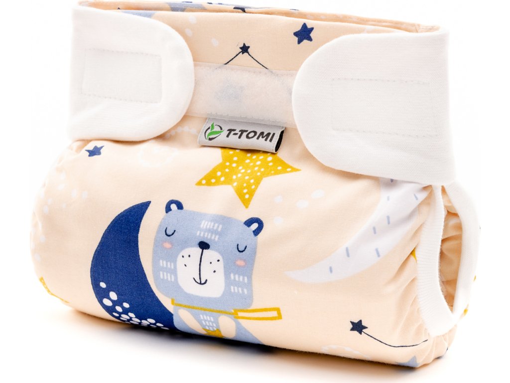 Tyto kalhotky nejsou savou vrstvou, mohou se nosit v kombinaci s jednorázovými plenami, a to nejlépe na oblečení (na body, dupačkách či punčoškách). Vnější vrstvu tvoří čistá bavlna s mnoha různými moderními designy, zapínání je na přední straně na suchý zip. Abdukční kalhotky T-TOMI lze vybrat ve dvou velikostech, a to pro děti cca 3-6 kg a 5-9 kg. Abdukční kalhotky jsou prodyšné, pohodlné a jednoduché na používání i údržbu.
