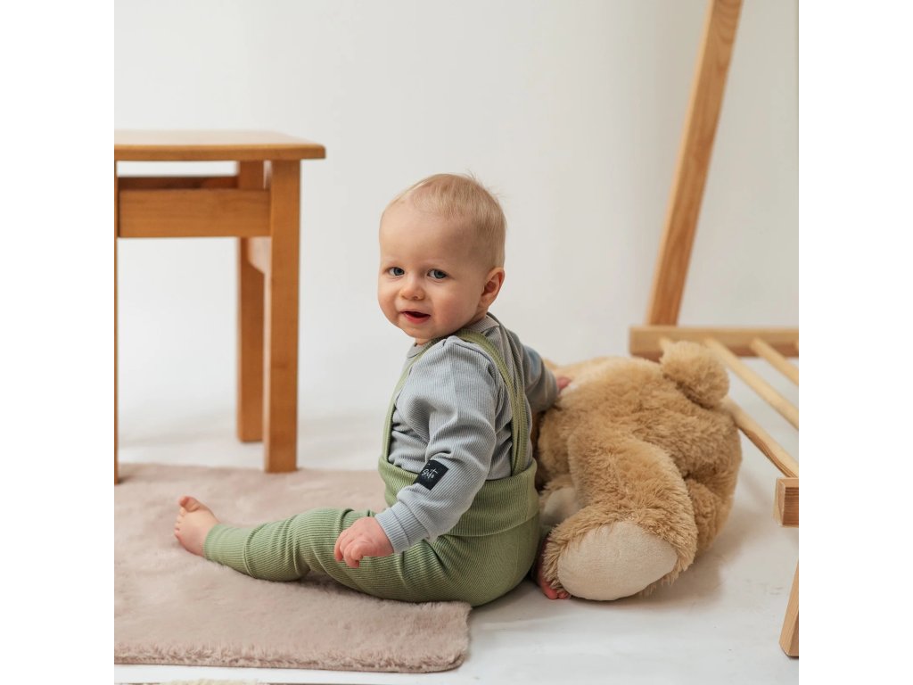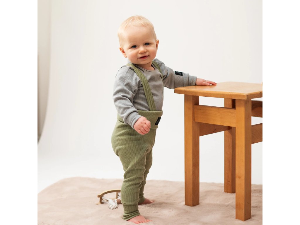 Rostoucí žebrované kalhoty s laclem Color Sage. Tento produkt je navržený tak, aby splnil všechny vaše představy o dokonalém a pohodlném oblečení pro vaše nejmenší.