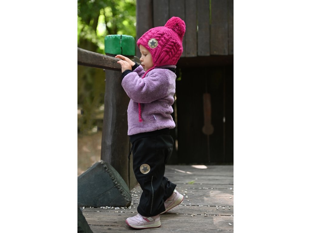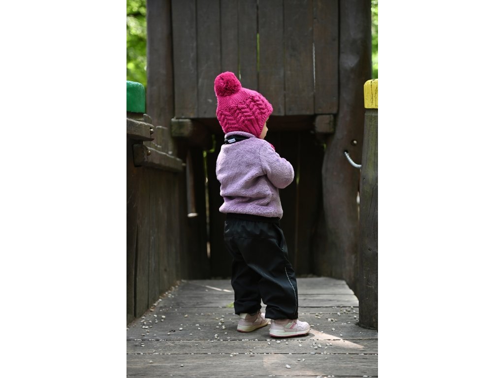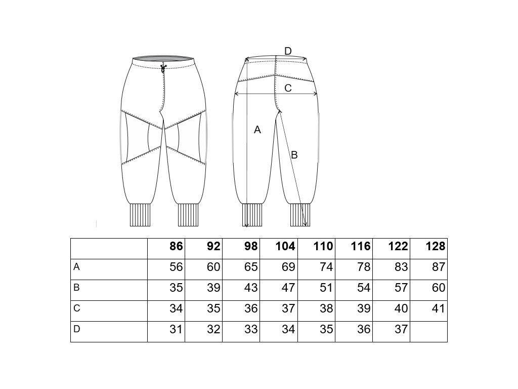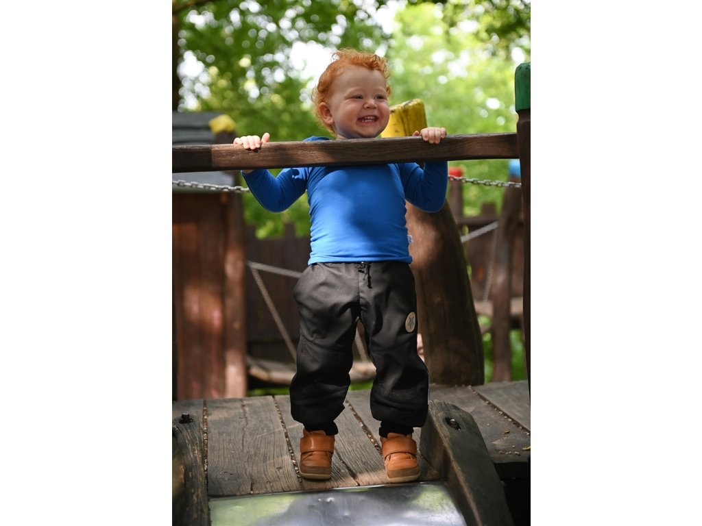 Svým střihem podporují komfortní nošení a zároveň udrží tělíčko v teple a suchu. Kalhoty jsou vhodné na sport i každodenní nošení. Pas je pružný, podpoří tak pohodlí. Dle potřeby je možné kalhoty stáhnout šňůrkou s brzdičkou. Materiál nebude omezovat pohyb dítěte, svou příjemnou elasticitou se přizpůsobí. Kalhoty skvěle sedí a nevytahávají se.
