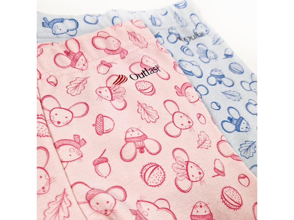 Bez pohodlných legín Outlast® si volnočasové aktivity už ani nelze představit. Tyto legíny jsou vyrobené ze silného bavlněného úpletu s přidaným materiálem Outlast®. Tento materiál dokáže efektivně pracovat s teplem - zabrání přehřátí těla, v případě ochlazení dokáže nahromaděné teplo opět uvolňovat, takže zahřeje. Díky těmto vlastnostem se děti mohou bezstarostně věnovat hraní a materiál Outlast® zajistí teplotní pohodu po celou dobu nošení. Při výrobě legín byl využit smykový Outlast®, který je vhodný do chladného počasí. Materiál je z líce hladký, z rubu má smyčky.