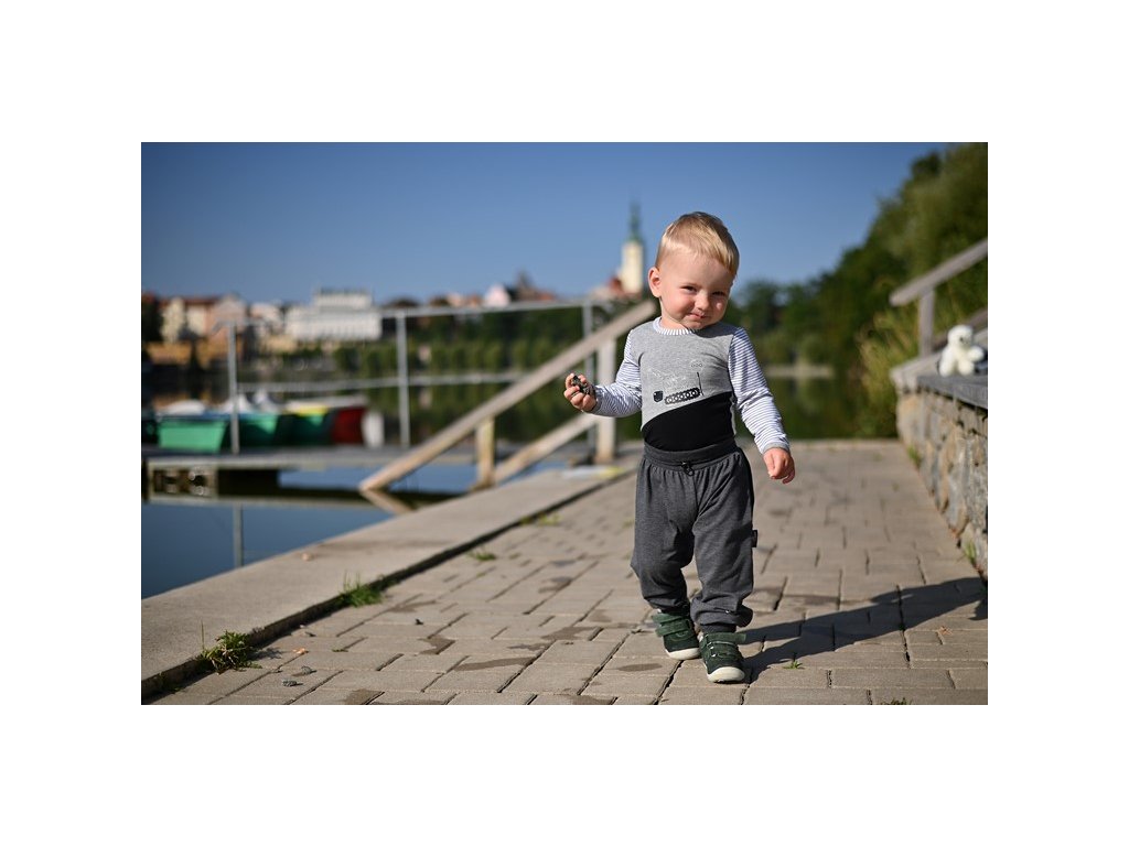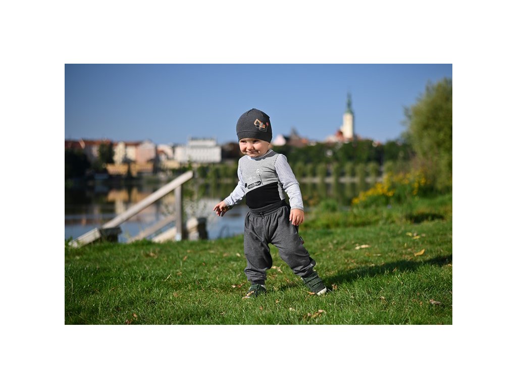 Kvalitní a pohodlné tepláky jsou skvělou volbou při oblékání dítěte na hraní a volný čas. Pas a nohavice tepláků jsou opatřeny širokými náplety, díky kterým tepláky skvěle sedí na každé postavě. Tyto náplety slouží také k upravení velikosti tepláků podle aktuální výšky dítěte - ohrňte náplety tak, aby měly nohavice potřebnou délku. Díky tomuto praktickému střihu se tepláky skvěle přizpůsobí více velikostem a dítěti tak déle vydrží. Při výrobě tepláků byl použitý termoregulační materiál Outlast® v tenké variantě, která je díky jemnosti a hladkosti vhodná do teplejších měsíců, ale tyto tenké tepláky využijete určitě i při ochlazení, např. na doma nebo lze oblékat jako spodní vrstvu. Tepláky mají nažehlené etikety, které netlačí a naškrábou, a dětem tak nic nebrání věnovat se hrám nebo jiným oblíbeným aktivitám.